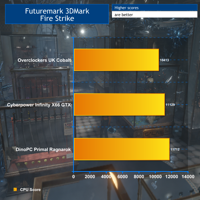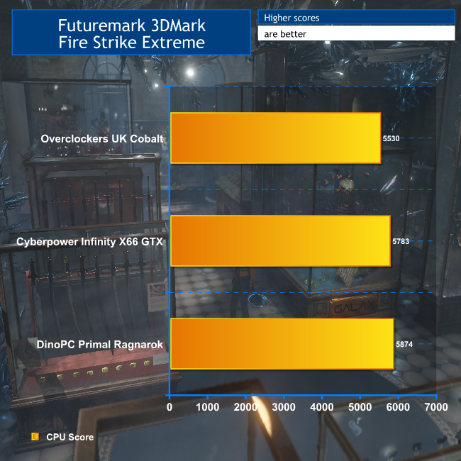 The Fire Strike Extreme score is slightly more favourable than the standard test, with the Cobalt 4.5 per cent behind the Cyberpower and 6 per cent behind the DinoPC.
