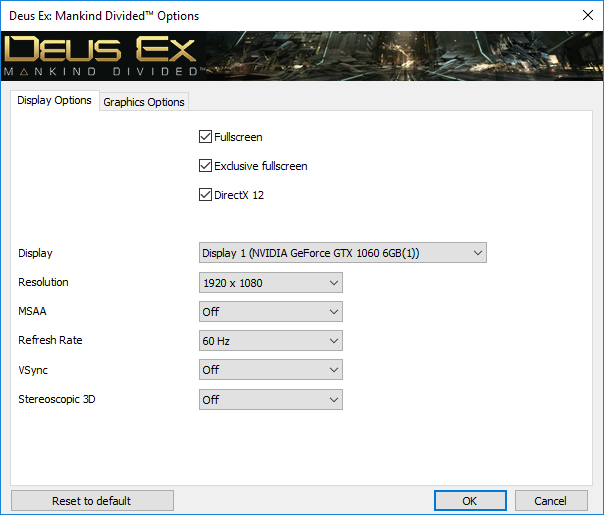 We used an initial Full HD (1,920 x 1,080) resolution and graphics set to “High” quality with the Deus Ex: Mankind Divided built-in benchmark. This is a more demanding game than Rise of the Tomb Raider, so using the ‘very high' settings aren't recommended with a GTX 1060. We then set the resolution to 1,440p (2,560 x 1,440) but left all the quality settings the same.