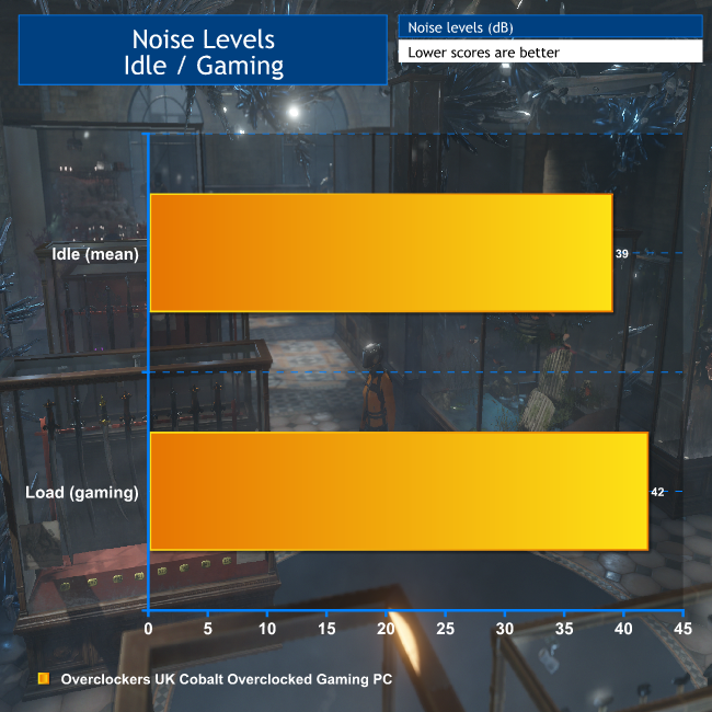 This is a pretty quiet system too, only hitting an average of 42dB even under heavy load. The 120mm fans on the chassis and CPU cooler keep things pretty silent – impressive stuff.