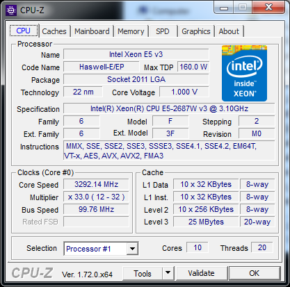 The GW-HT35's pair of Xeon E5-2687W v3 processors are top of the official Intel workstation range, although there are server-focused parts with up to 18 cores that we do sometimes see in desktops. The E5-2687W v3 “only” offers ten cores, but has a clock speed advantage over most of the server CPUs, running at a nominal 3.1GHz, with a 3.5GHz Turbo Boost mode.