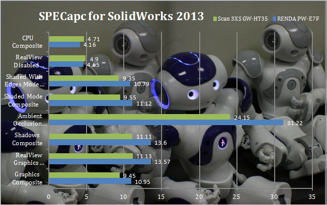 Although the Scan system excelled in the SPECviewperf SolidWorks viewset, the SPECapc benchmark tells a different story.