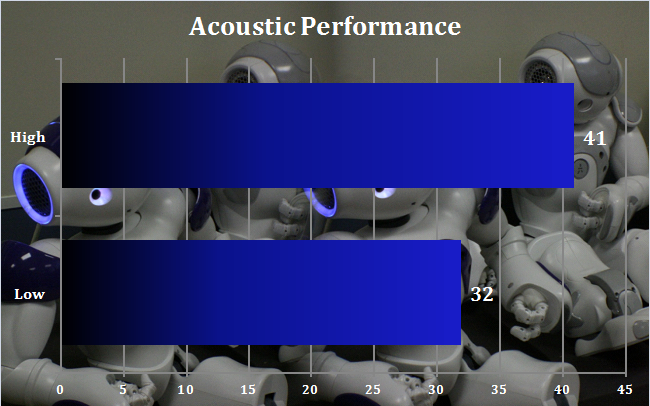 Ambient noise in the room is around 20-25dBa. We measure from a distance of around 1 meter from the closed chassis and 4 foot from the ground to mirror a real world situation.