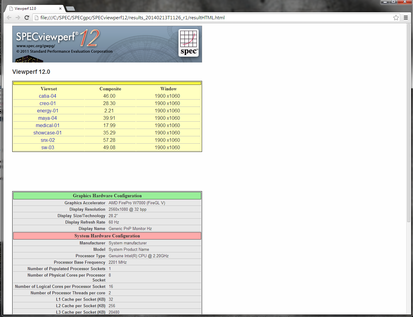 SPECviewperf 12 measures the 3D graphics performance of systems running under the OpenGL and Direct X application programming interfaces. The benchmark’s test files, called viewsets, represent graphics content and behavior from actual applications.