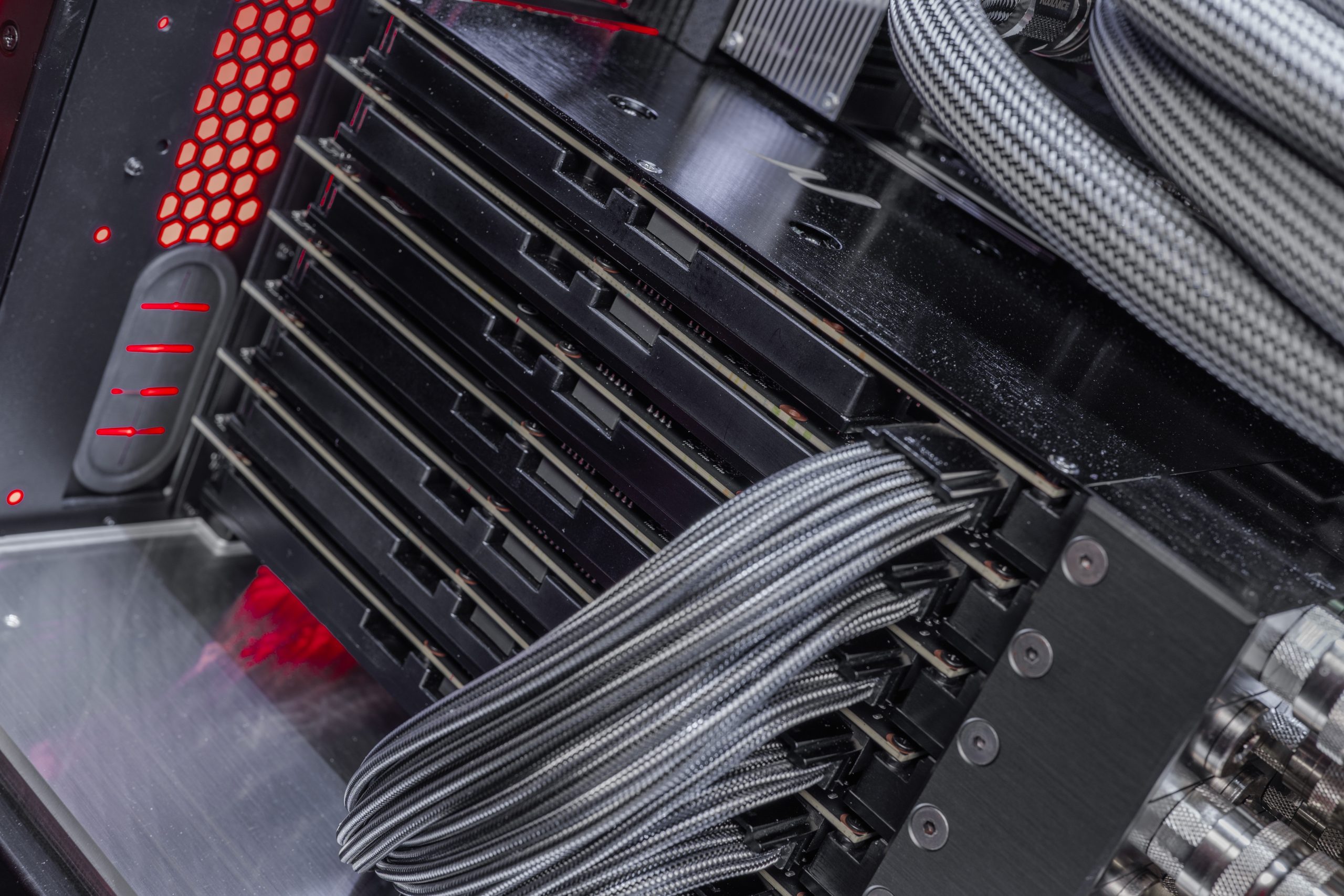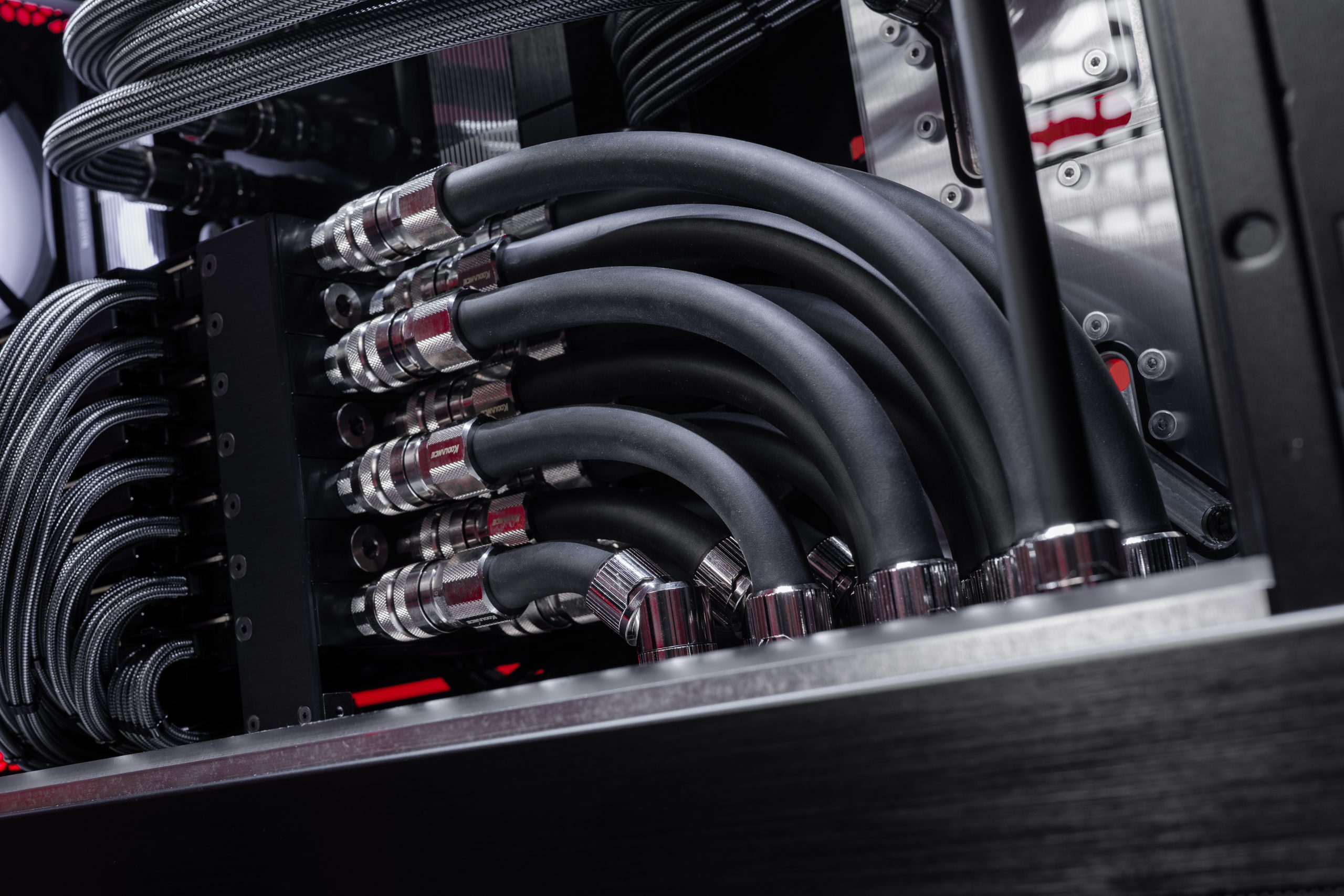 The 8Pack Supernova is the most recent 8Pack system to have a comprehensive overhaul with the 8Pack Supernova MK3. On show here at Computex this week, this system is powered by a flagship AMD Ryzen Threadripper Pro CPU and seven RTX 4090 GPUs – all fully water cooled.