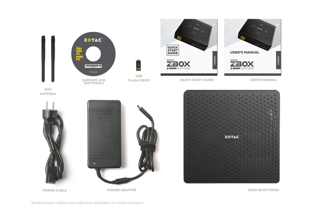 According to Jacky Huang, product director of Zotac Technology, the Zbox QCM7T3000 is a “testament” of the company's continuous push toward innovation “in every mini way”. With the QCM7T3000 reduced dimensions of 210x203x62.2mm, this mini PC has an “overall footprint” of about half of a traditional tower workstation. By using a powerful cooling solution focused on heat outflow and cooling inflow, it's possible to sustain the QCM7T3000 at peak performance for long periods of time, despite its small size might make you think otherwise.