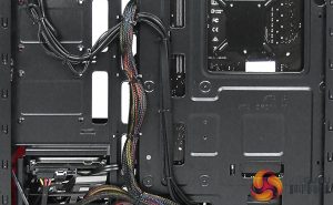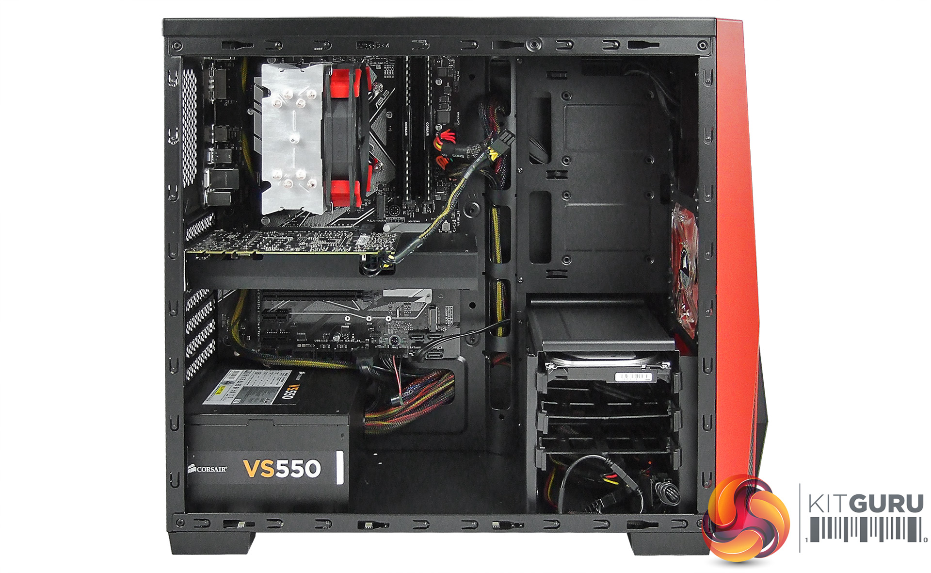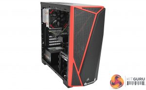 The Spec-04 has a perspex window, which is fine for casual glances but naturally we want a closer look. Behind the side-panel our first impressions are that of neatness. This case lacks any soft or subtle cable management, so PC Specialist has internal structure and good old cable ties to work with. It’s done well with both, and the cabling is as effective as this case allows for.
