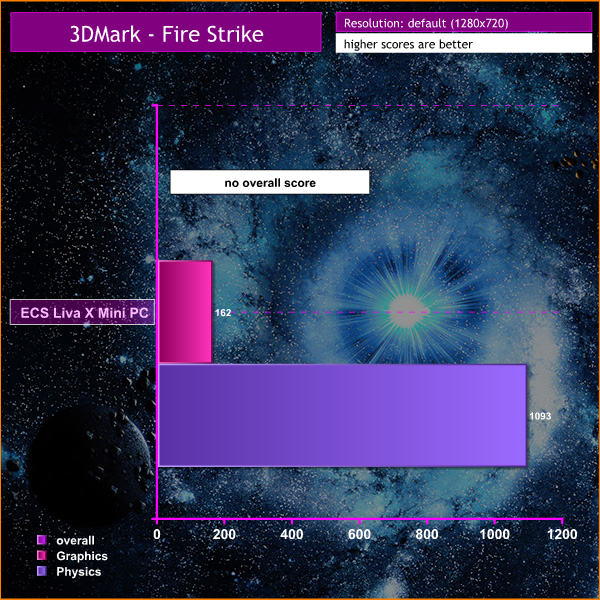 As you'll see from the graphs, the Liva X is a low performer. Very low. Mind you, it only draws 4.5W at idle and 12.5W under load so there isn't much going on under the bonnet. Having said that, the Liva X did manage to run PC Mark 8 and Media Espresso, it just did it rather slowly.