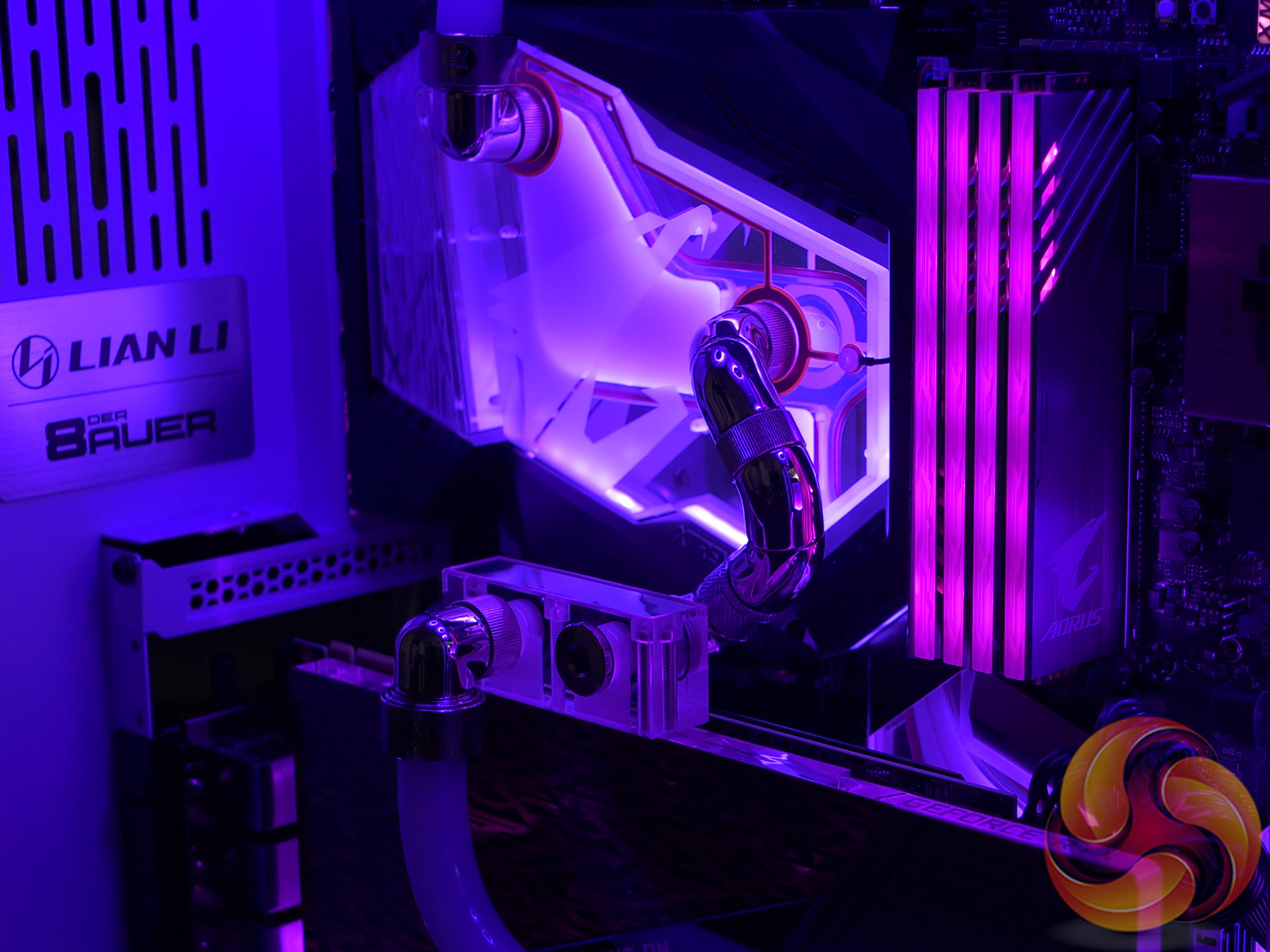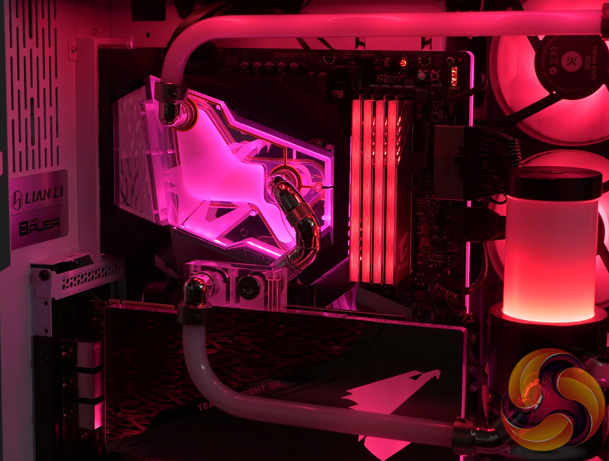 Once the WaterForce system was built we updated the BIOS, used the Smart Fan 5 facility to control the fans at a sensible speed, installed Windows 10 and then installed Gigabyte’s RGB Fusion utility. The Lian Li uses a black/white colour combination and we has chosen EKWB CryoFuel Solid Cloud White coolant so we actually had to think for a while about RGB settings.The default Rainbow Marquee looked a bit … gaudy … so we asked the EKWB Facebook group for their opinion.