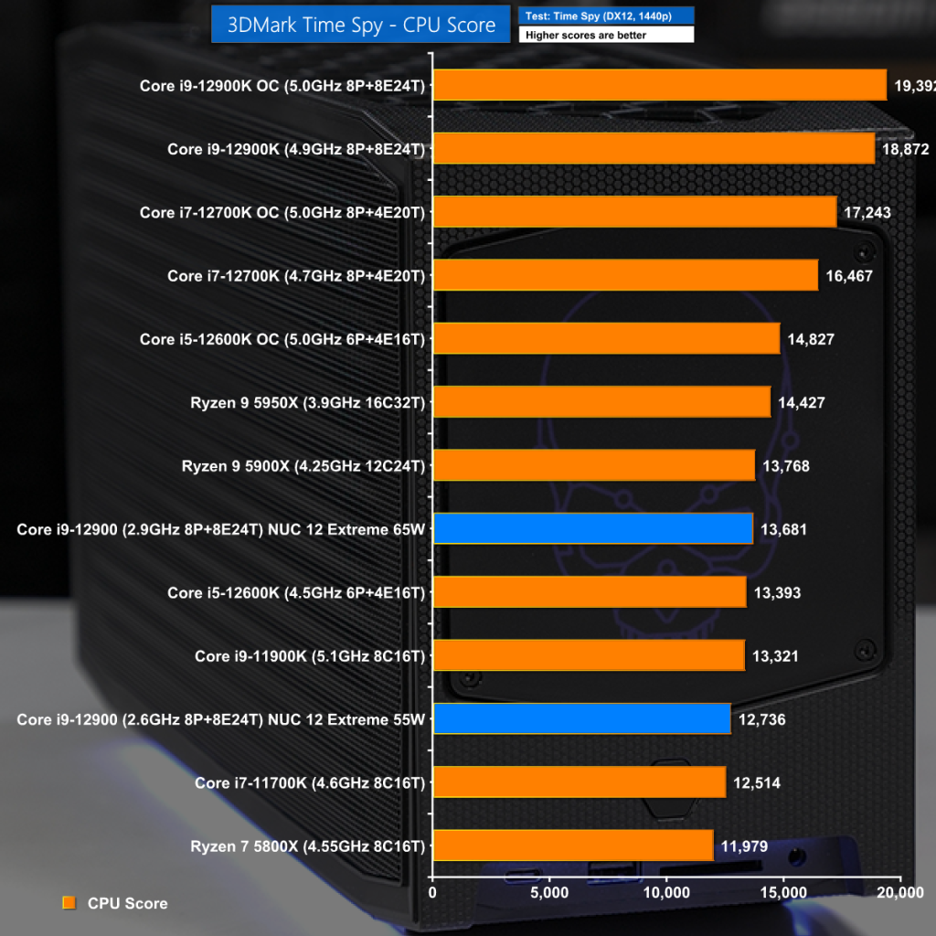 The CPU test element of 3D Mark Time Spy is intense and once again we see the Core i9-12900 performing at a similar level to the Core i5-12600K.