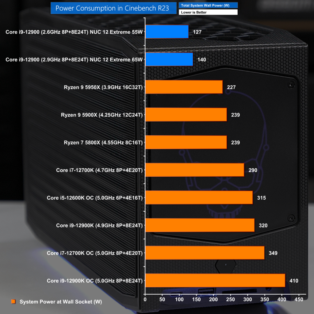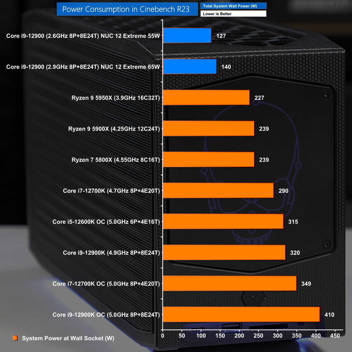 The explanation for those low CPU temperatures can be seen right here as system power draw is also very low. You will note this is purely a test of the CPU and pretty much leaves the graphics card idling. When you are gaming you can expect to see the power draw in the range of 300W-350W.