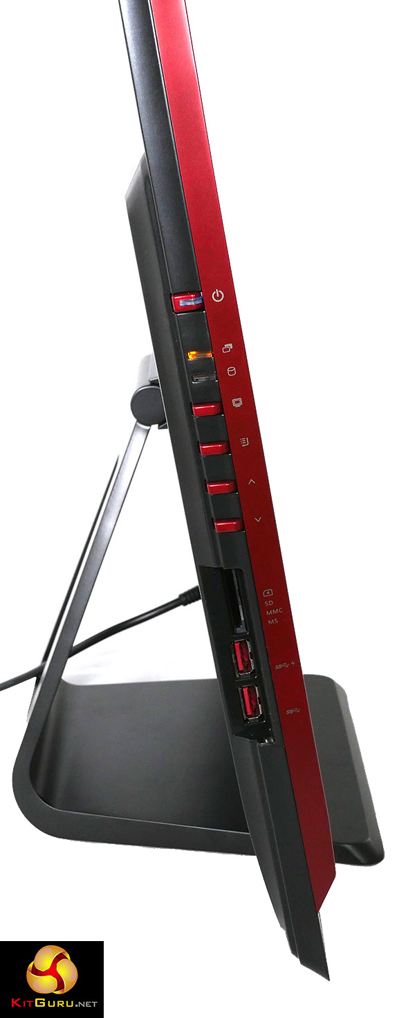 One snag with the laptop-as-a-desktop concept is that a laptop has the ports and connectors arranged around the sides where they are easy to reach whereas the MSI Gaming 24 6QE has a top, two sides and a bottom. The top is unused, the two sides carry the DVD drive, control buttons, card reader and two USB 3.0 ports. The snag is that a good number of the ports are arranged on the bottom edge where they are hidden away between the lower bezel and the stand, and this makes them awkward to reach.