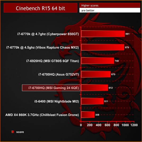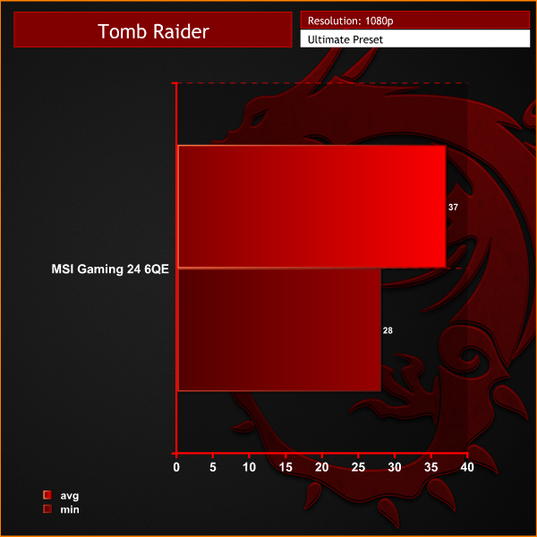 MSI Gaming 24 6QE handled PC Mark 8, 3D Mark and an array of games with a fair degree of success. Naturally we used a screen resolution of 1,920 x 1,080 for testing as that is the setting of the IPS panel and we found it pushed the graphics chip to the limit. With image quality settings set to High the frame rate in games typical landed in the mid-30's fps which wasn't entirely satisfactory.
