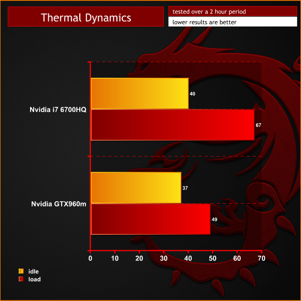 Regular tasks do not stress the GTX 960M however games immediately push the graphics to their limits and this is undoubtedly the weakest part of the MSI. Other parts of the specification, such as the 8GB of DDR4 in a single module rather than dual channel don't look especially appealing but in the real world doesn't cause a problem.