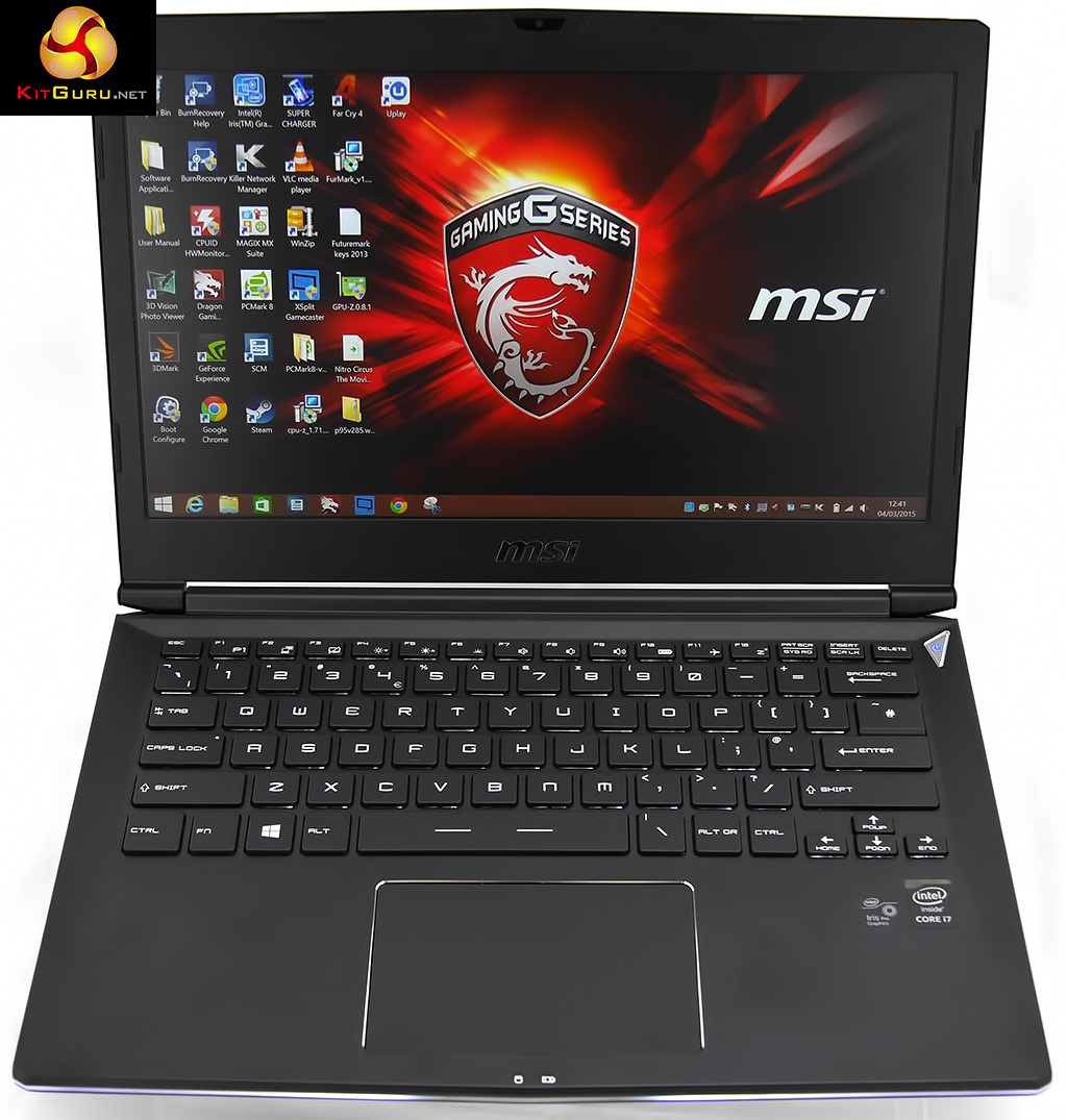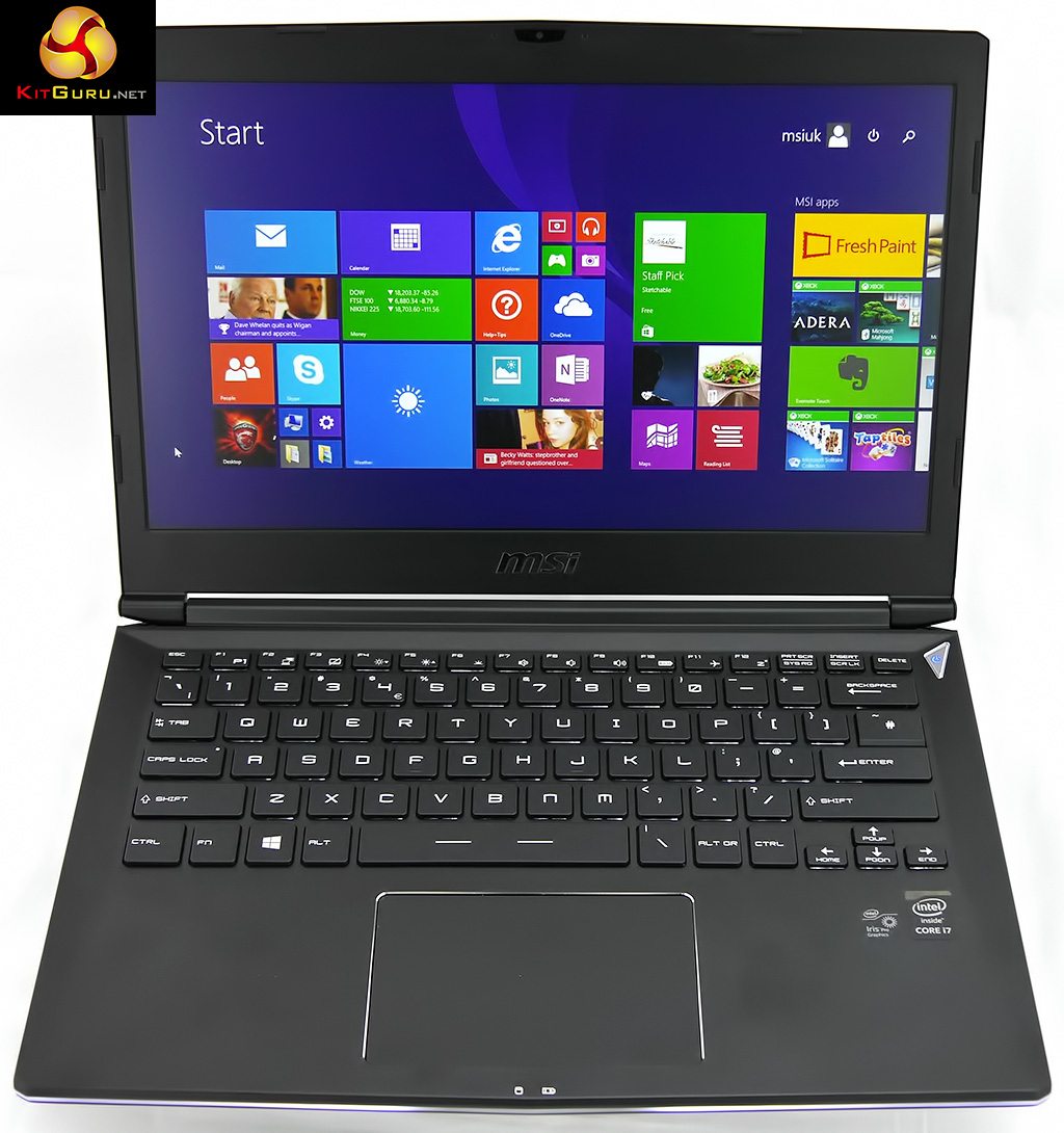 The key features are the Intel Core i7-4870HQ 2.5GHz/3.7GHz, 16GB of DDR3-1600MHz memory and two Kingston 256GB M.2 SSD in RAID 0, along with a thin and light form factor that weighs a mere 1.2kg. On the downside the integrated Intel Iris Pro 5200 graphics fall far short of the mark required to play serious games (although titles such as League of Legends and WOW will work), so MSI's creation of the GamingDock is a clever move.