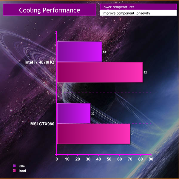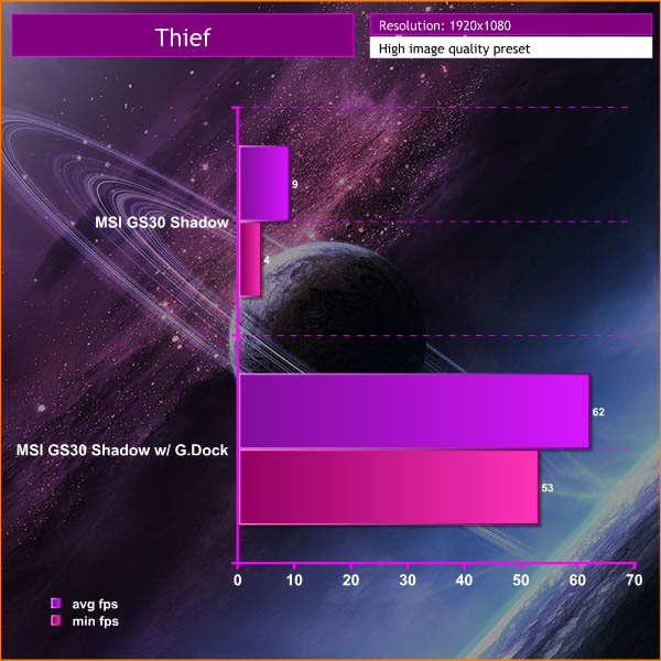 Let's not beat about the bush. If you play games with the bare GS30 Shadow you are unlikely to see frame rates above 20fps. On the other hand, once you engage the GTX 980 you'll be able to play any game you like at Full HD with frame rates over 60fps. Core i7 and GTX 980 is a killer combination.