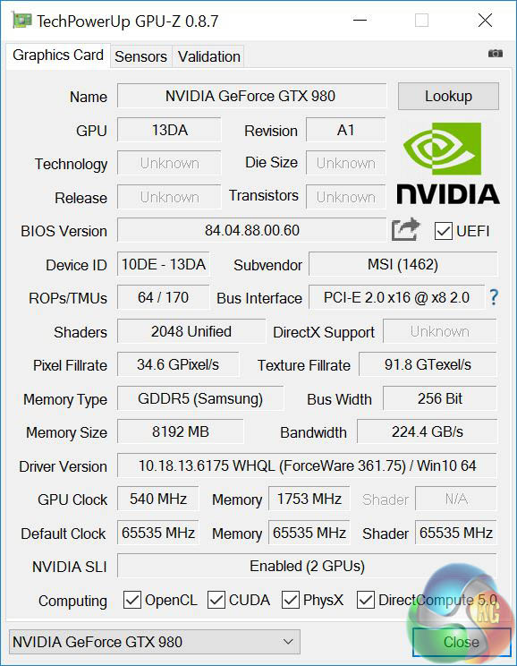 Graphics: 2x NVIDIA GeForce GTX 980 8GB GDDR5 in SLI