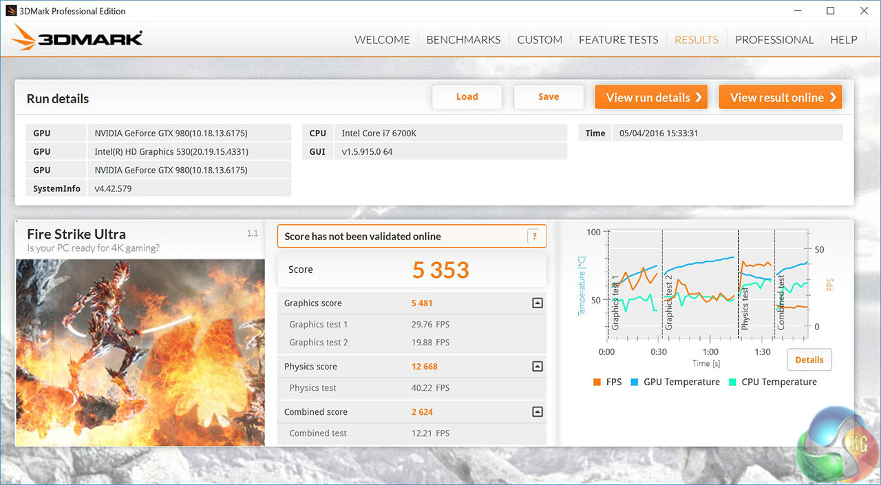At 4K we saw something rather unusual with 3D Mark and gaming frame rates dropping by an average of 15 percent when compared against the MSI GT80 Titan with dual GTX980's in SLi. We checked the GTX 980 GPUs as they idle at a lower speed than standard but run at the correct 1202MHz under load.