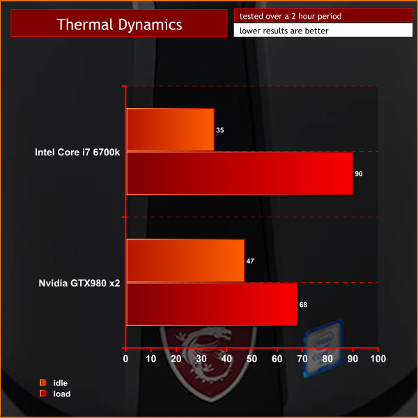 To put MSI Vortex through its paces we use AIDA64 to create the maximum heat output the Core i7 and GTX 980s are ever likely to experience. In game play the MSI Vortex delivered the 1080p frame rates that we expected and there were no surprises whatsoever. You can, of course, play games at 1080p on pretty much any settings that you choose.