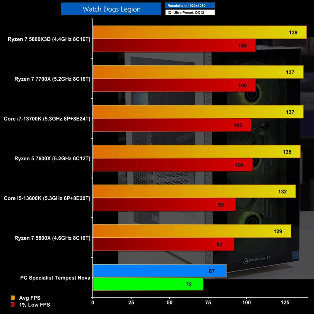 Watch Dogs: Legion is a tough test on the Ultra preset but despite that we see decent frame rates from the Tempest Nova.