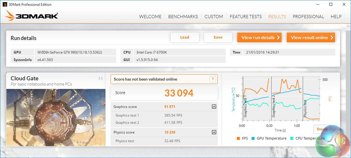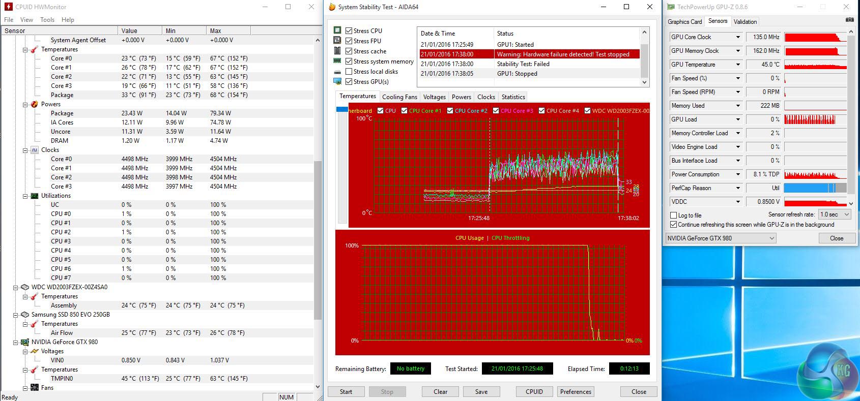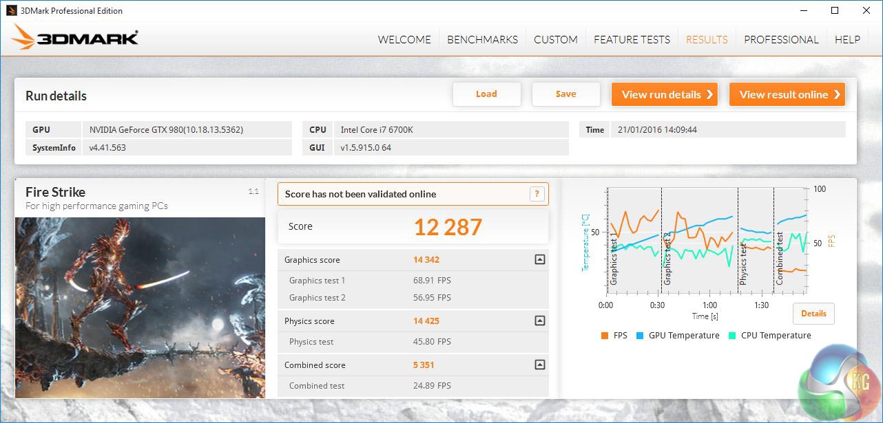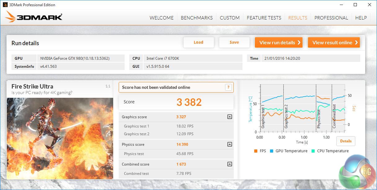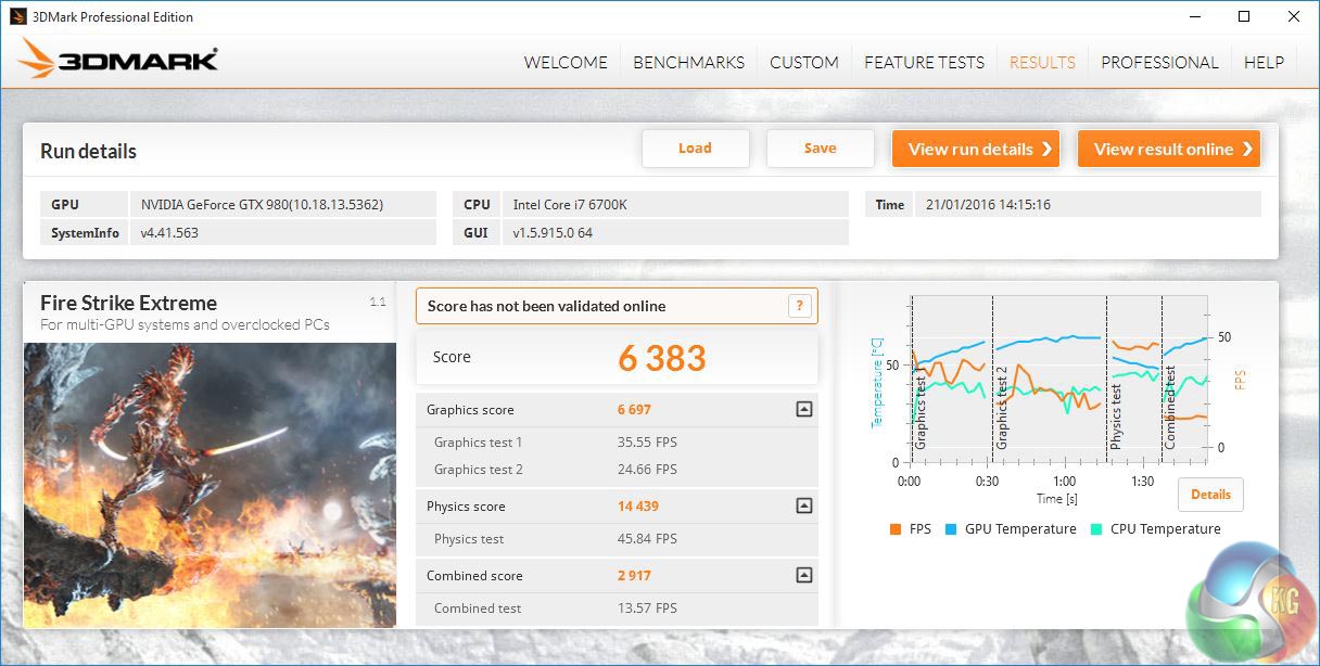 The wheels partially came off this review when we used AIDA64 to stress the hardware and check temperatures. You can see from our screen grabs that the system behaved impeccably in 3D Mark with a CPU temperature around 50 degrees and a GPU temp approaching 60 degrees.
