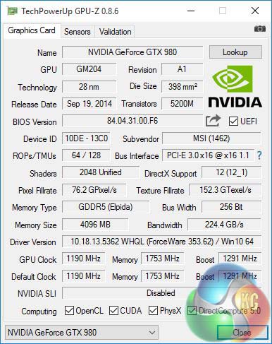 - Graphics: MSI Gaming Edition GeForce GTX 980 4GB.