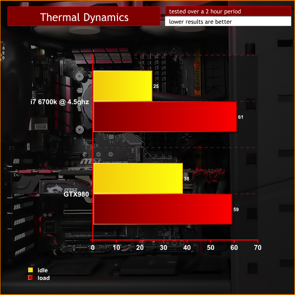 Testing went well and the Vibox Rapture-Chaos MX2 delivered exactly the performance you would expect from a 4.5GHz Core i7-6700K and overclocked GTX 980. A reference GTX 980 has 1126MHz core, 1216MHz boost and 1753MHz/7Gbps memory while this MSI Gaming Edition graphics card has a core speed of 1190MHz core and 1291MHz boost.