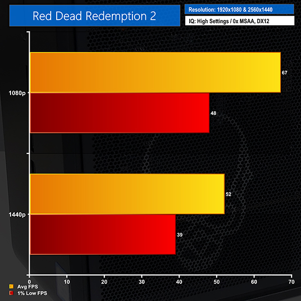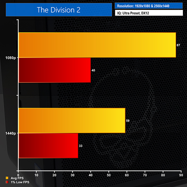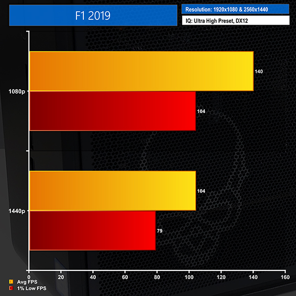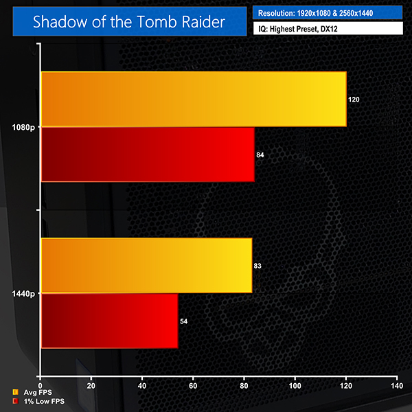 You shouldn’t have any issues running demanding titles at 1080p and high refresh rates with close to maximum quality settings. 1440p is more demanding, but we saw numbers that were in the correct vicinity for a good gameplay experience on a 60Hz monitor.