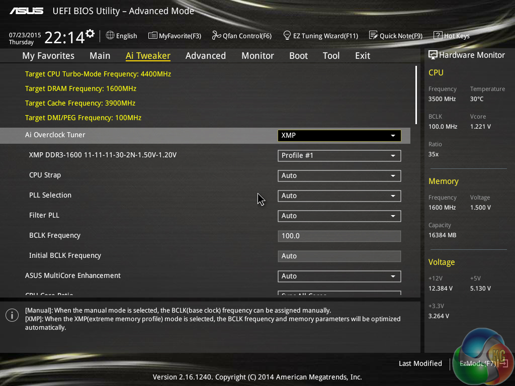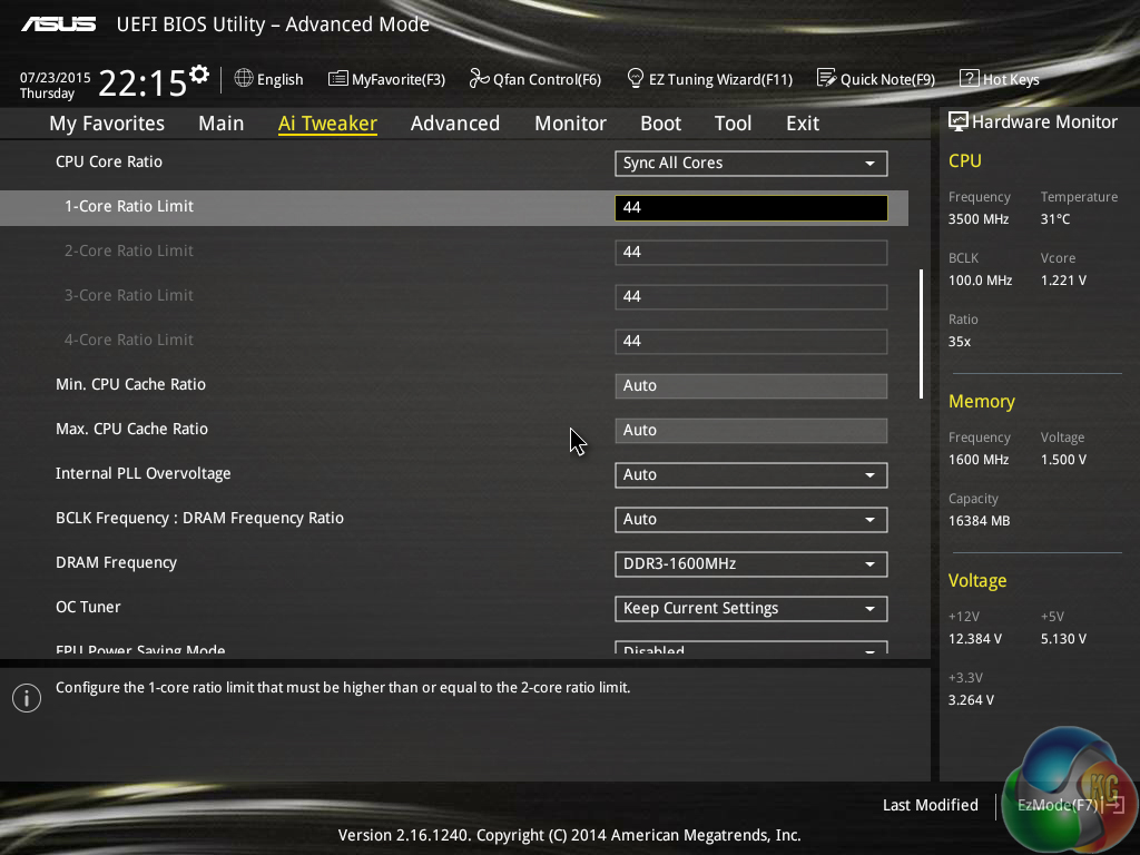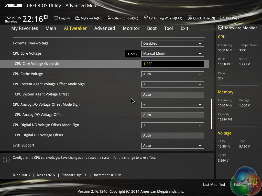A 1.22V CPU core voltage is used to maintain the 4690K's 4.4GHz clock speed. This voltage level is sensible for 4.4GHz and results in a thermal output that is manageable for the Raijintek Themis CPU cooler.