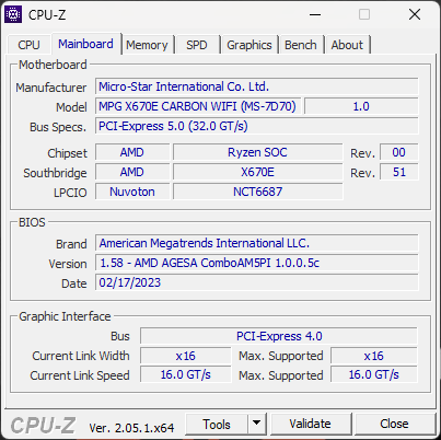 - MOTHERBOARD: MSI MPG X670E CARBON WIFI