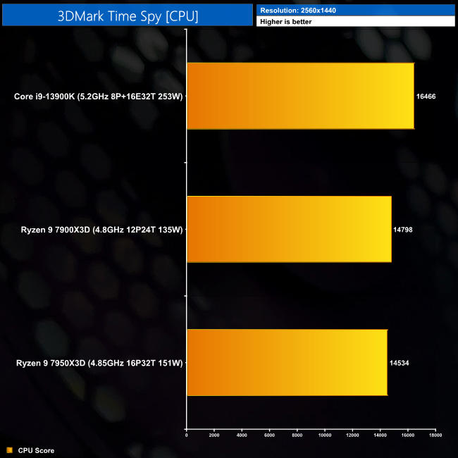 The 3DMark Time Spy CPU results show the 7900X3D scored slightly higher than the 7950X3D featured in a recent review. This is solid performance and a great start for the CPU of choice from Cyberpower.
