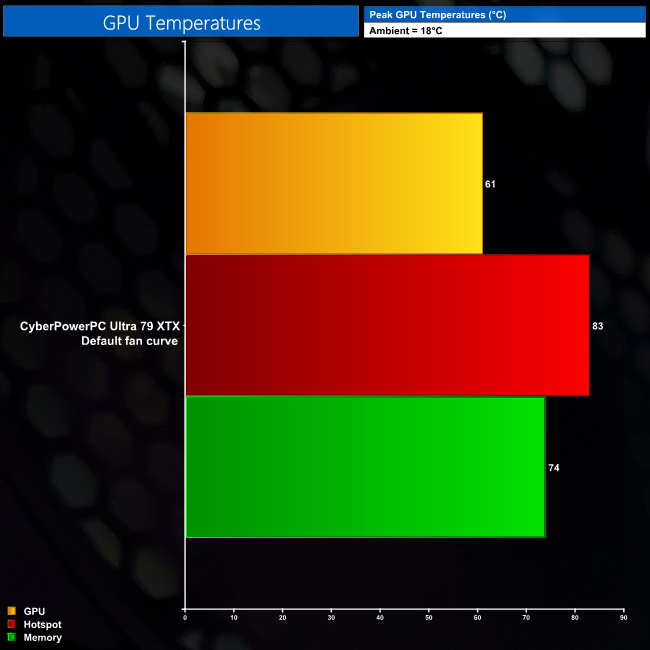 GPU thermals during a Cyberpunk 2077 gaming session topped out at a respectable 61 degrees Celsius. Cyberpunk 2077 can be a very demanding game and the GPU and general PC cooling setup seemed to cope with it well.