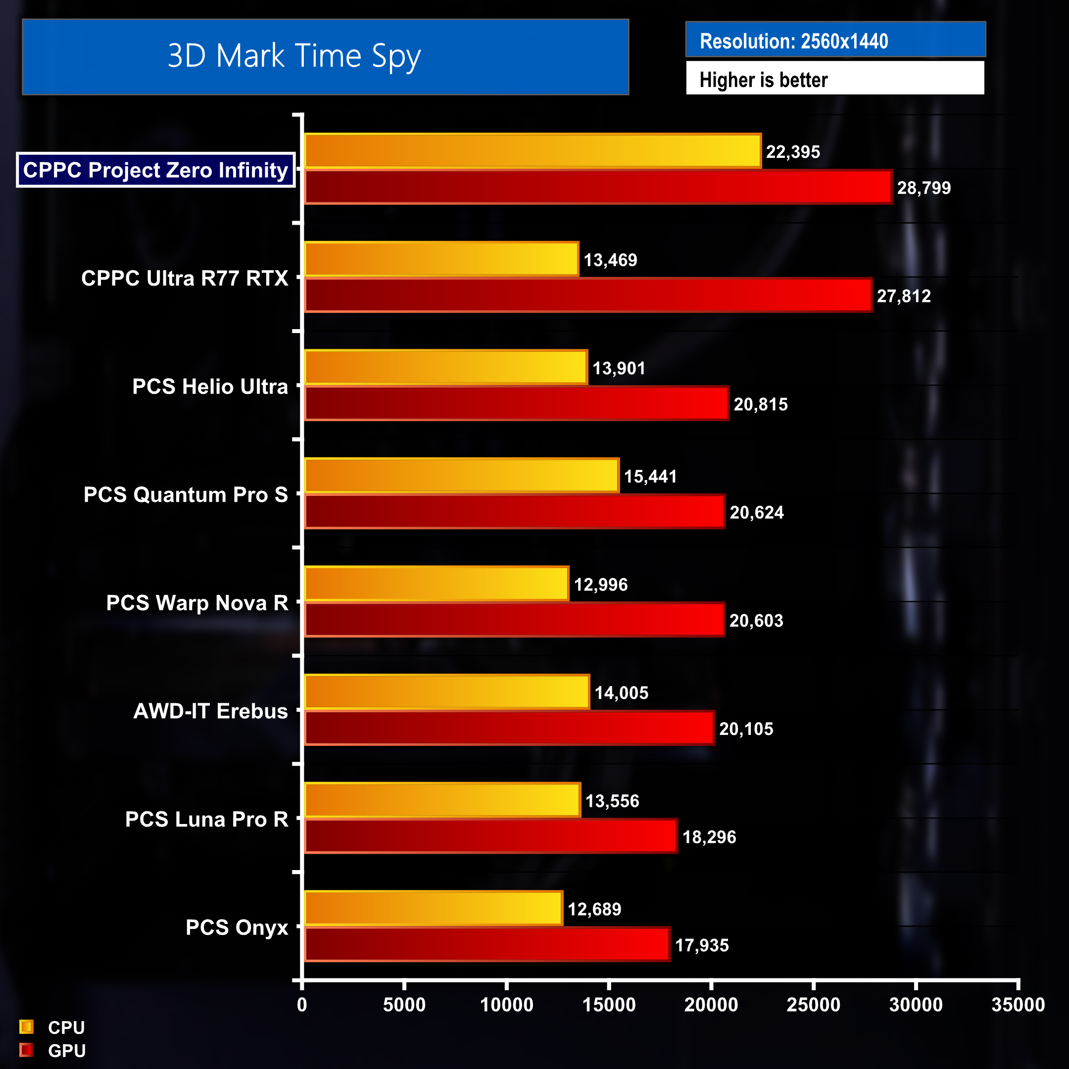 Pitting this CyberPowerPC system against a range of previously reviewed prebuilt desktop PCs in 3DMark Time Spy saw it take a substantial lead and top the chart. CPU scores were recorded at 22,395 points, which obliterates anything I have tested in the past. GPU performance tells a similar story, with the MSI RTX 4080 Super Suprim X scoring 28,799 points.