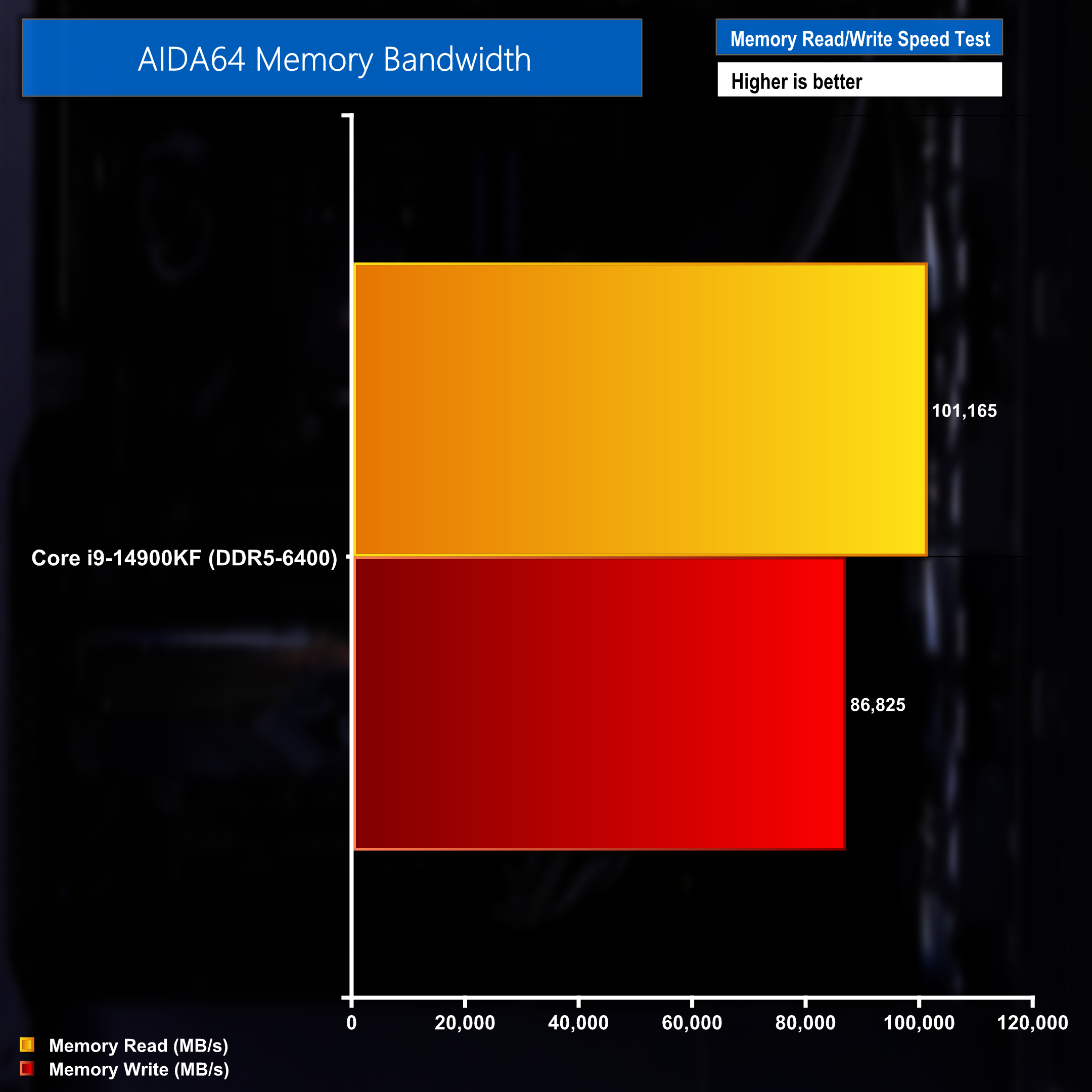 The Kingston Renegade RGB DDR5 6400MT/s memory found in the system recorded some very fast read and write speeds when testing with AIDA64. While not as beneficial to Intel as it would be to an AMD based system, this result still highlights the benefits to be found in running faster system memory.