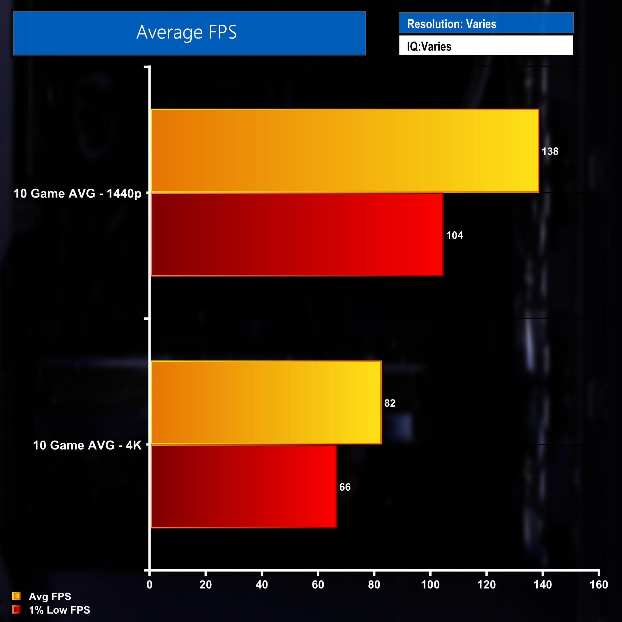 The system performed very well during our gaming benchmarks. All titles were at maximum settings (minus ray tracing and any upscaling options). The overall 4K average of 82FPS was a particular highlight. For full details of all 10 games tested check out our full video review on YouTube.