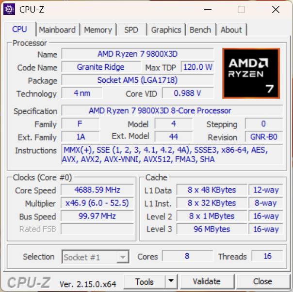 • CPU (Processor):AMD Ryzen™ 7 9800X3D