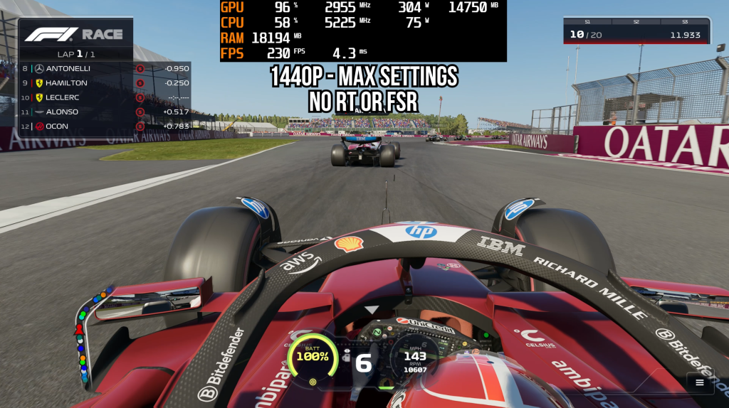 Gaming performance is impressive at 1440p – particularly in titles such as F1 25 but more so in Cyberpunk 2077 at maximum settings. Performance at 4K is very title-dependant – again using Cyberpunk 2077 as an example, we can see below that the Ultra XT3D struggles to maintain high frame rates when playing this title without any form of scaling or frame generation. Turning these features on however, does dramatically increase performance, while still maintaining a decent level of fidelity when using FSR 3's Quality preset.