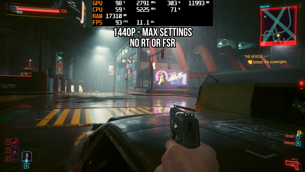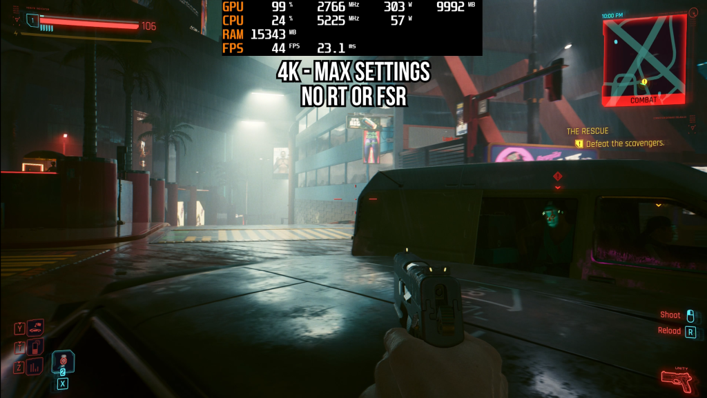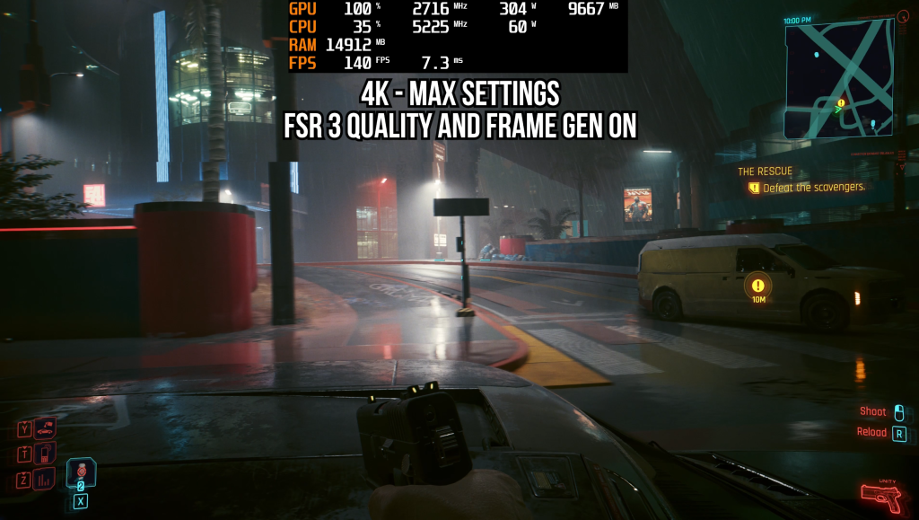Cyberpunk 2077 (4K – with FSR 3 Quality and Frame Generation ON)