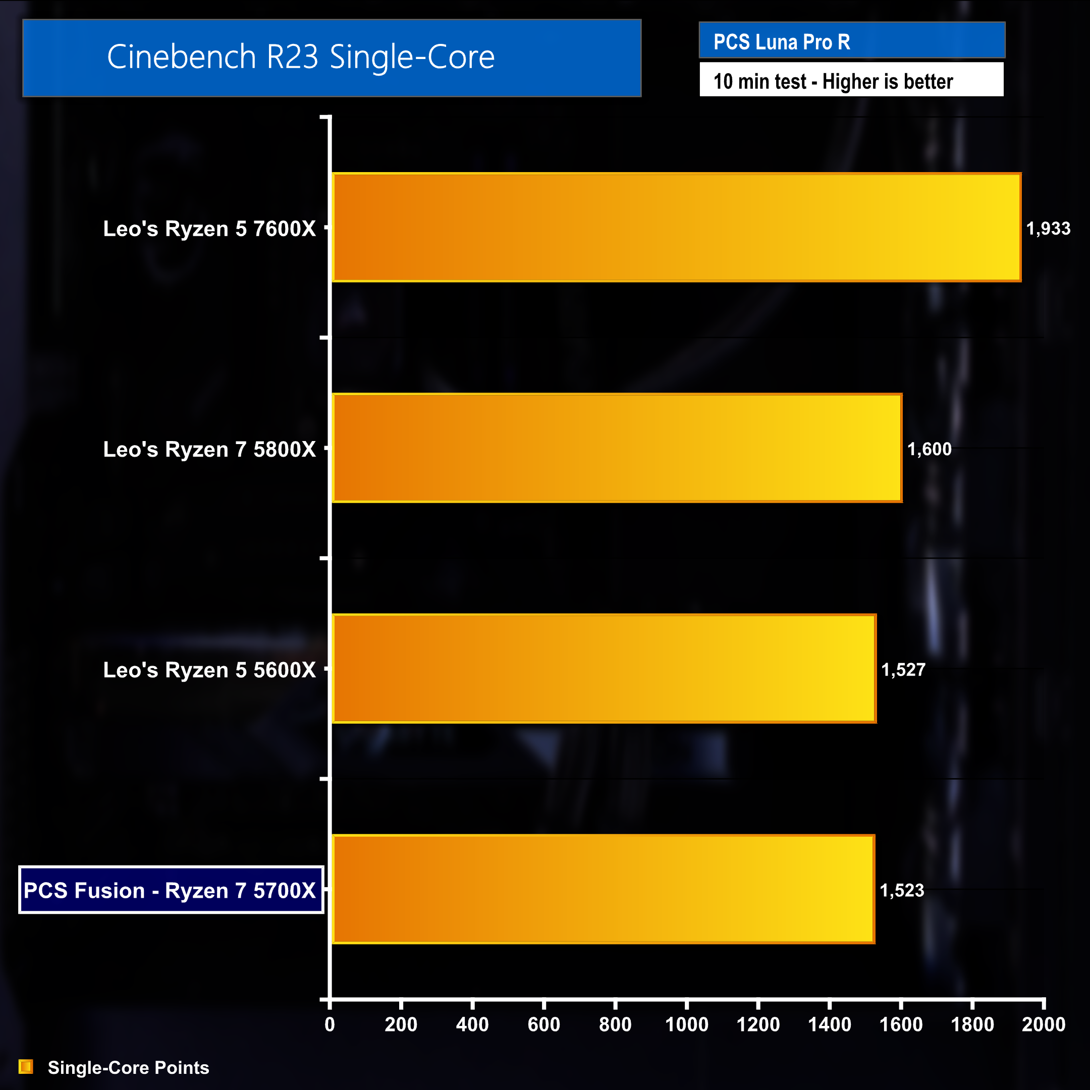 Single core performance is pretty much on par with the Ryzen 5 5600X and while the Ryzen 7 5700X found in the PCSpecialist Fusion is by no means the fastest single core CPU around, it will still handle everyday workloads with ease.
