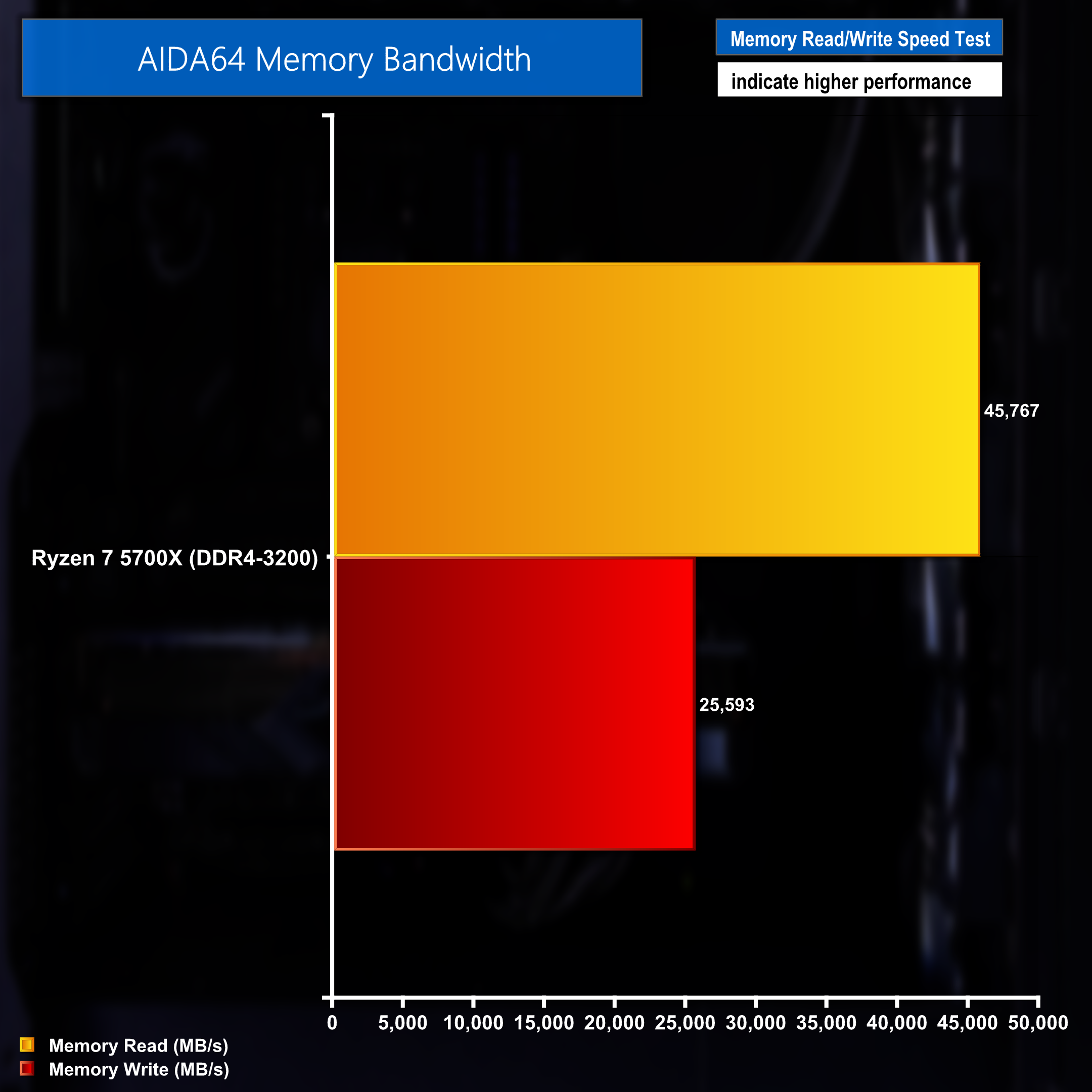 Memory read and write speeds when measured with AIDA64 were to be expected when considering this system is running DDR4 memory.