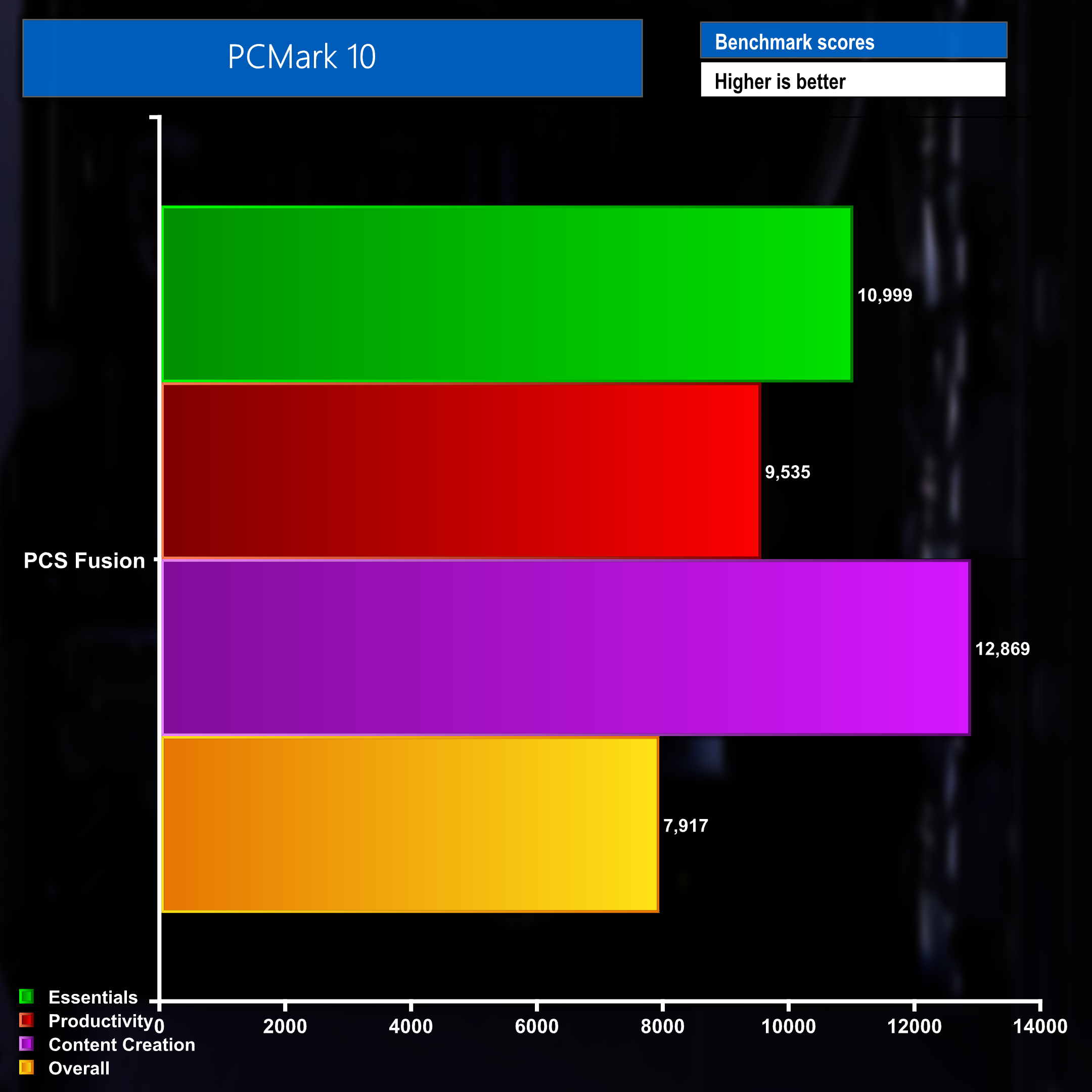 PC Mark 10 further highlights the systems capabilities in a variety of workloads and scenarios. The Fusion may not be the most powerful PC we've ever tested but it is more than capable at carrying out a variety of tasks quickly and efficiently.