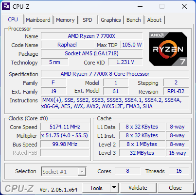 - Processor (CPU) – AMD Ryzen 7 7700X Eight Core CPU (4.5GHz-5.4GHz/40MB CACHE/AM5)