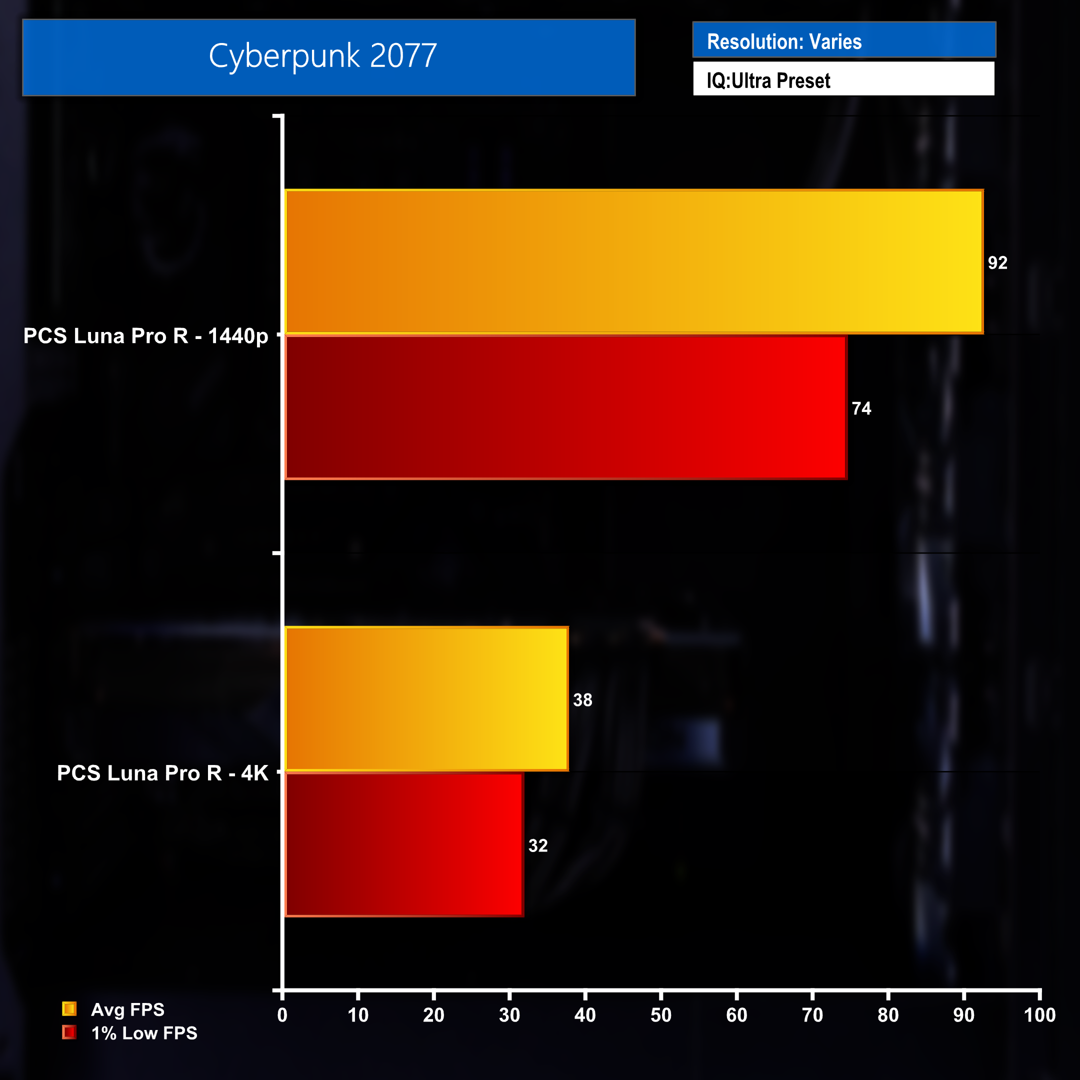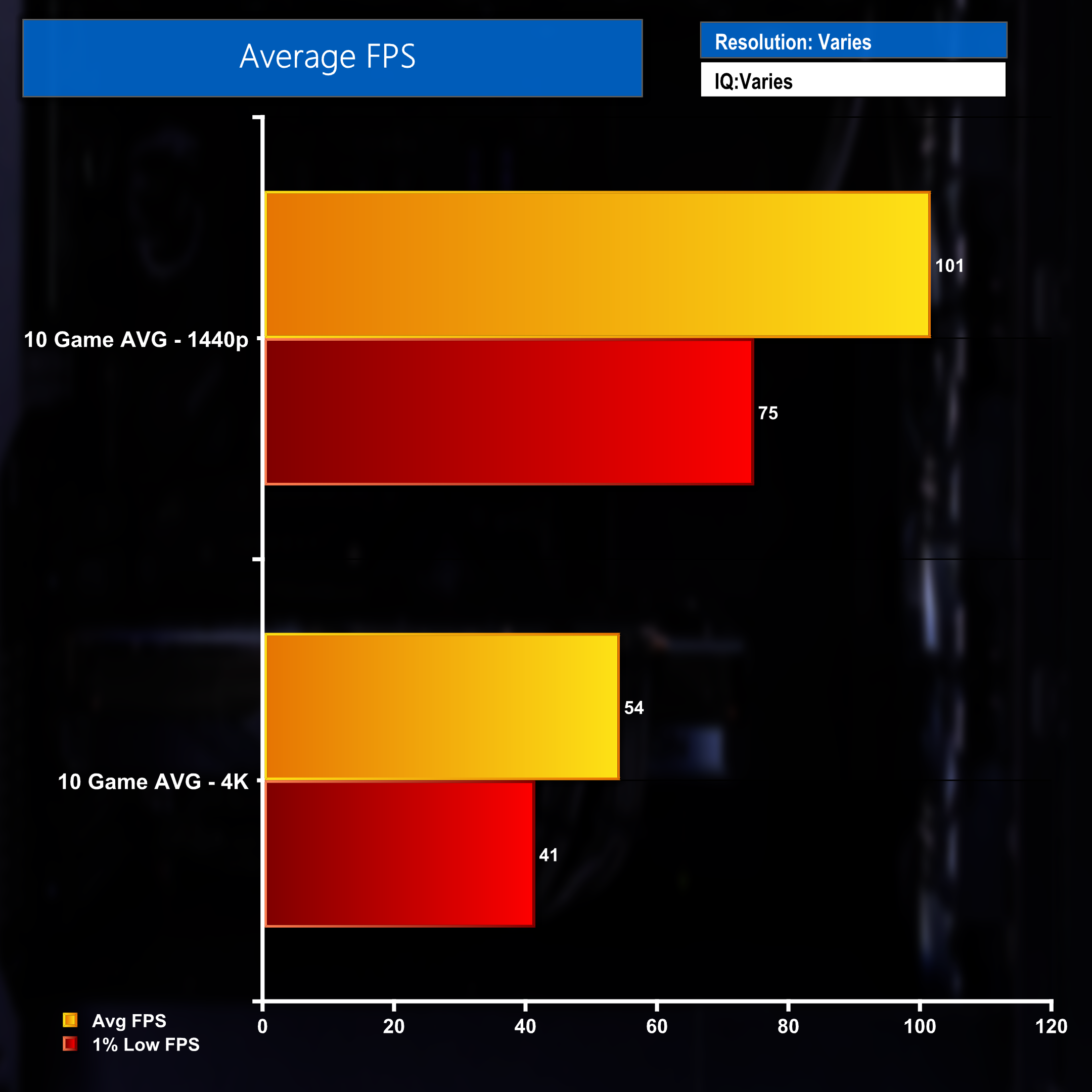 For a better overall picture, the 10 game average FPS results further reinforce the systems solid 1440p performance. 4k lands just shy of 60fps, which, with all games tested at maximum settings, is still very respectable.