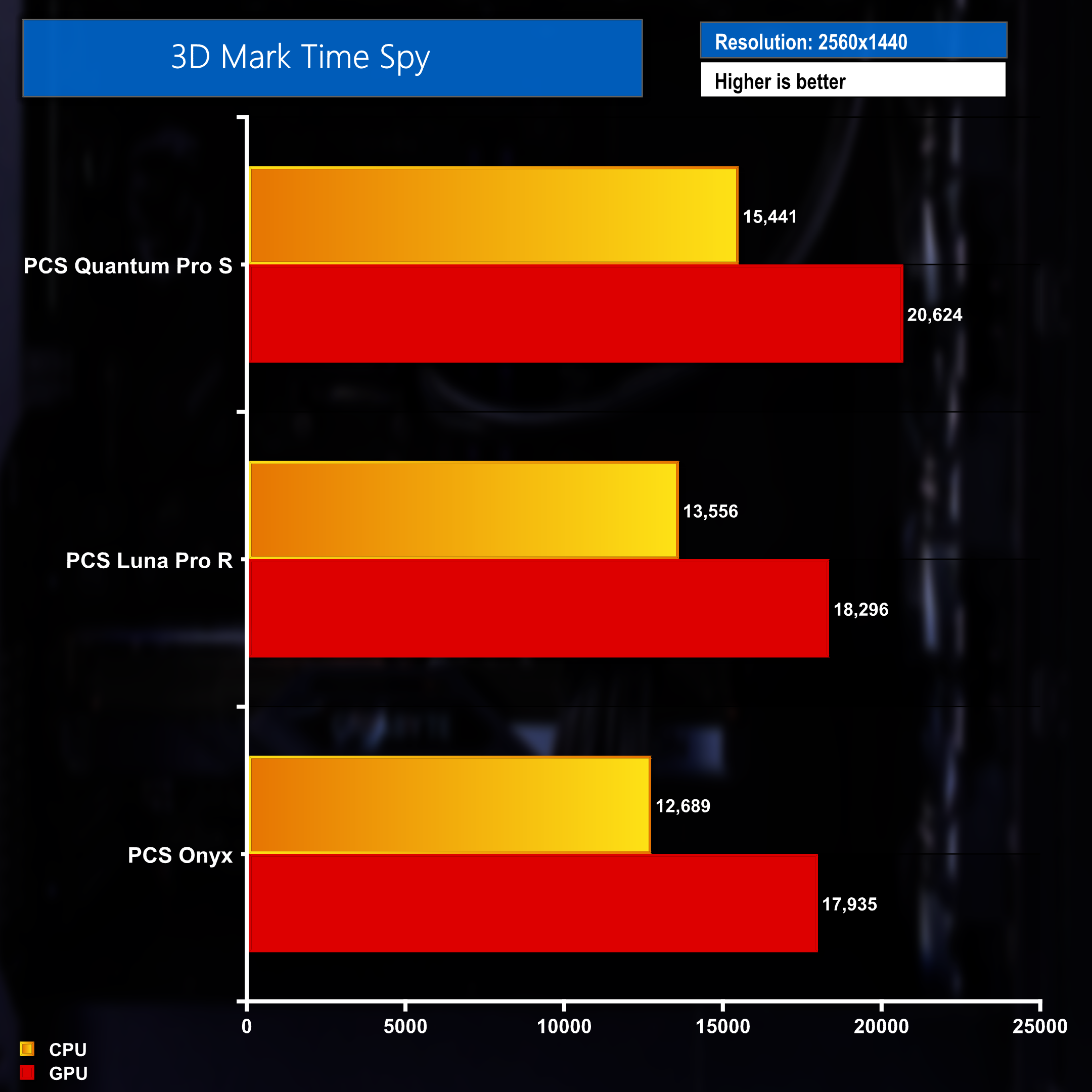 Comparing the Onyx desktop to some previously reviewed PCSpecialist machines in 3DMark Time Spy also sees the system come up at the bottom of the pile, though it is very close indeed. For full details, specs and pricing of these systems, check our full review over on YouTube.