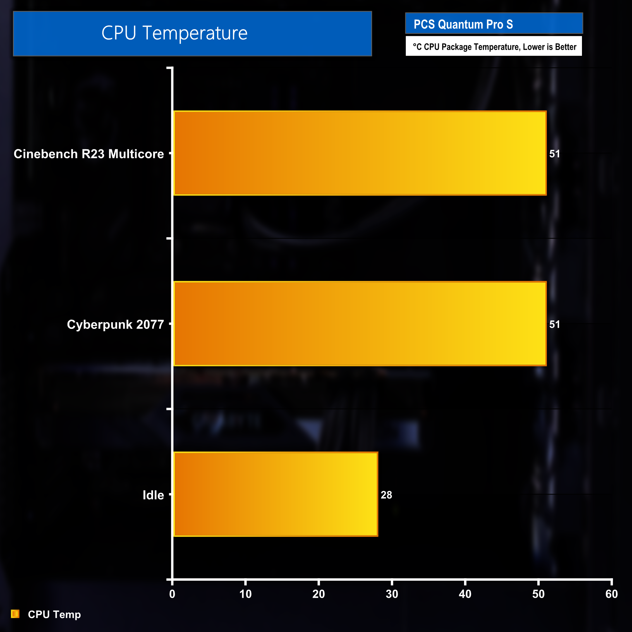 The power changes applied by the previously discussed setting, ASUS Performance Enhancement 3.0, are reflected in the heat generated by the processor. With the setting off, temperatures remained around 51 degrees during gaming and synthetic testing.