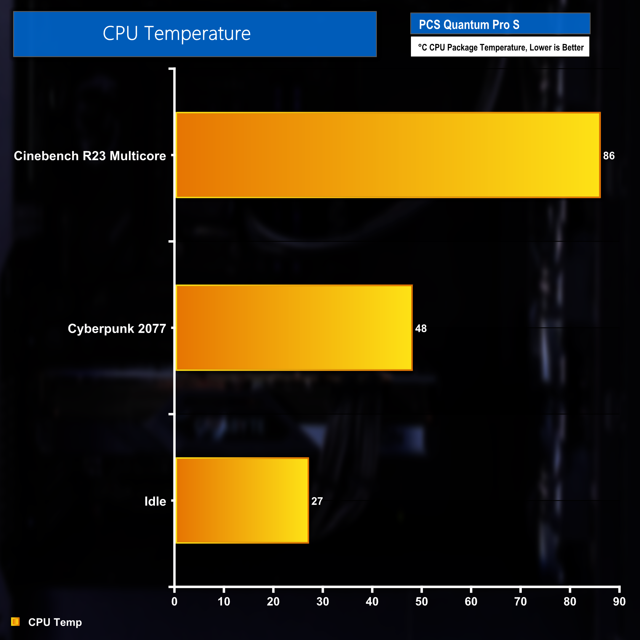 Pushing up the power limits and usage sees the CPU temperature rise to 86 degrees when running a Cinebench benchmark. Figures while gaming and idle remain relatively unchanged.