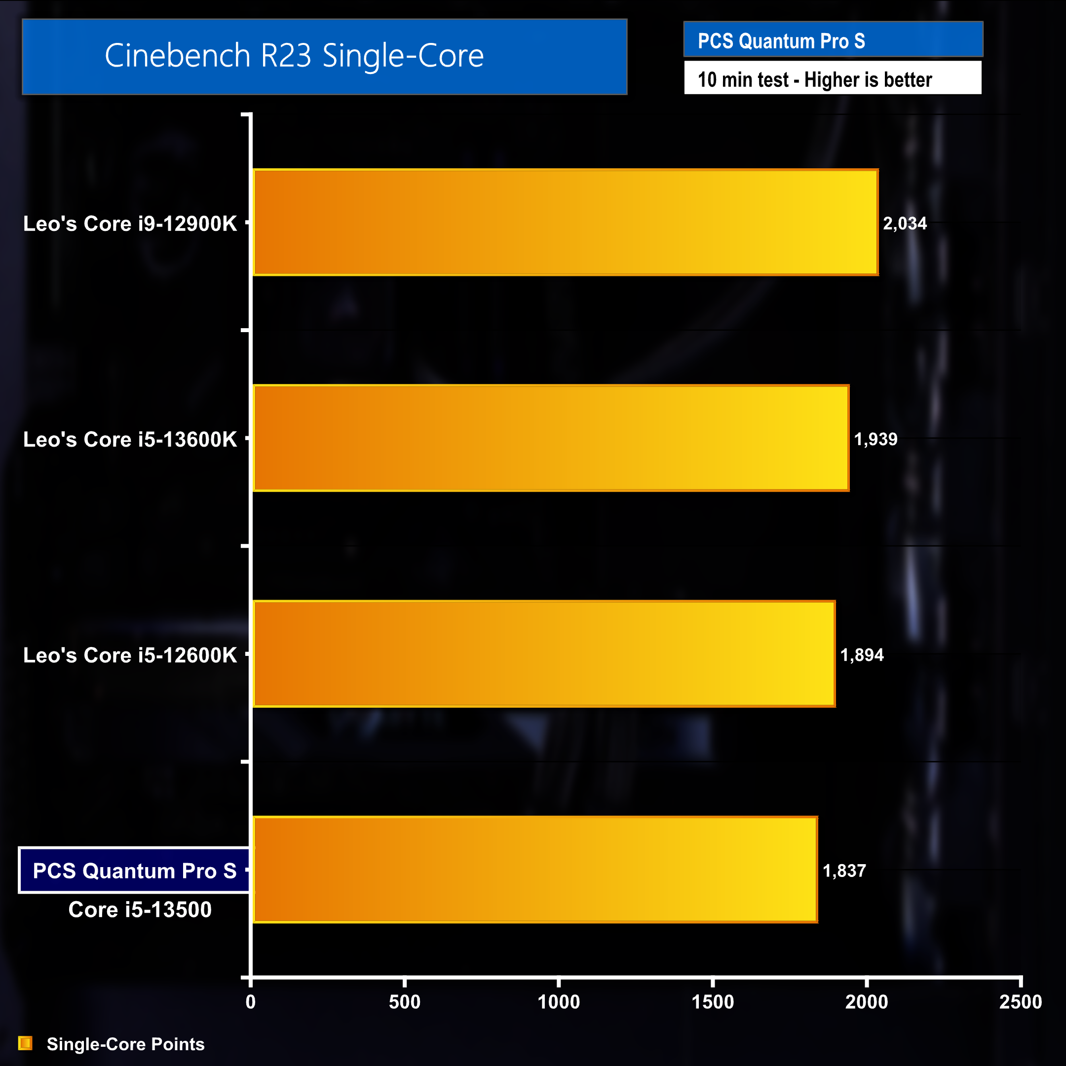 Single core performance in a Cinebench benchmark places the Core i5-13500 just underneath the Core 15-12600K tested by Leo on the channel a while ago.