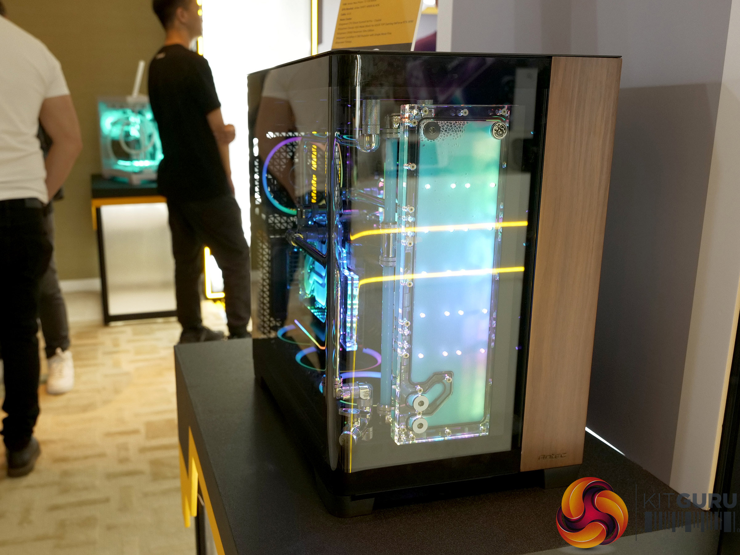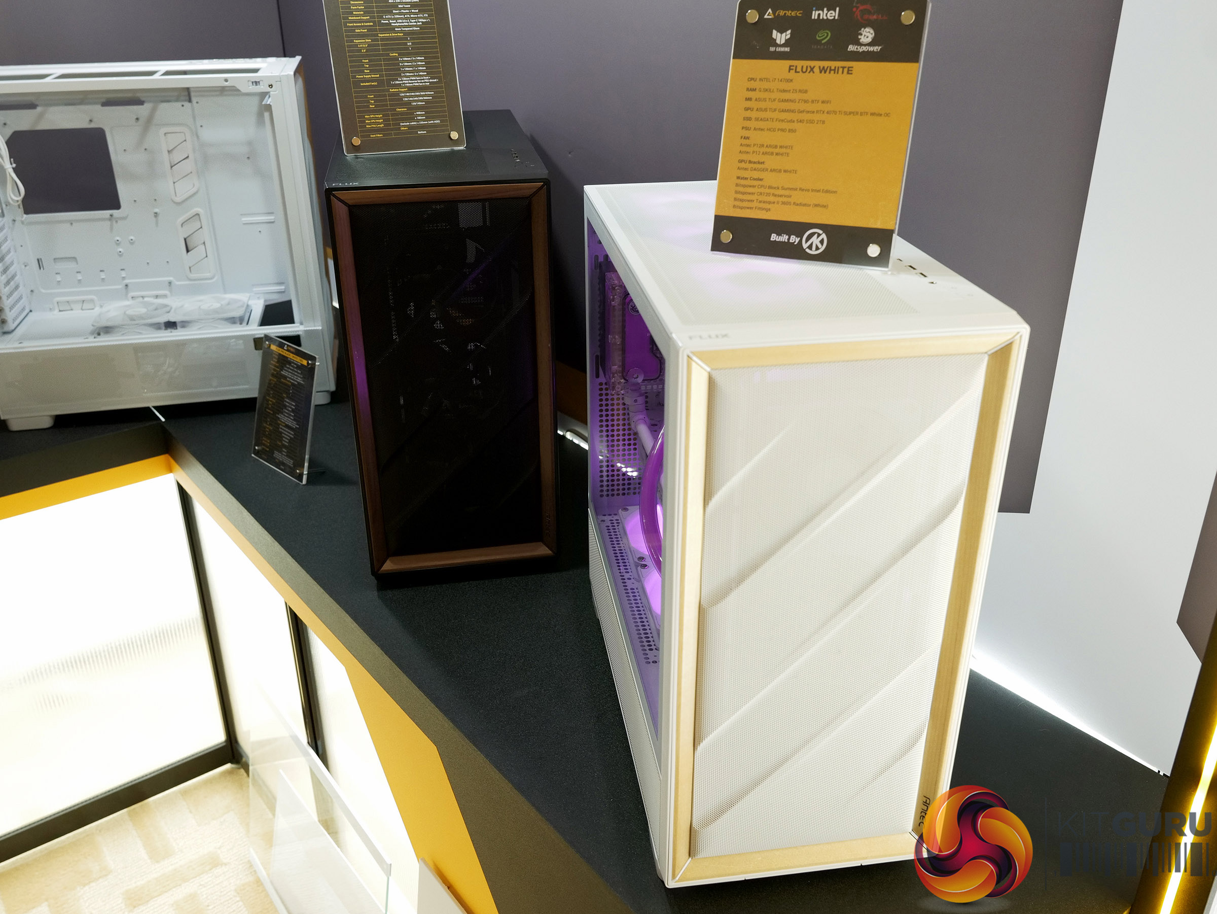 The Antec Flux is a new case to us as we have not yet reviewed it. The build we see on display in the video looks great, giving you an idea of how well you can use the interior space for a liquid-cooled build. The Flux Pro is a larger version, offering even more space and even an LCD panel for system monitoring.