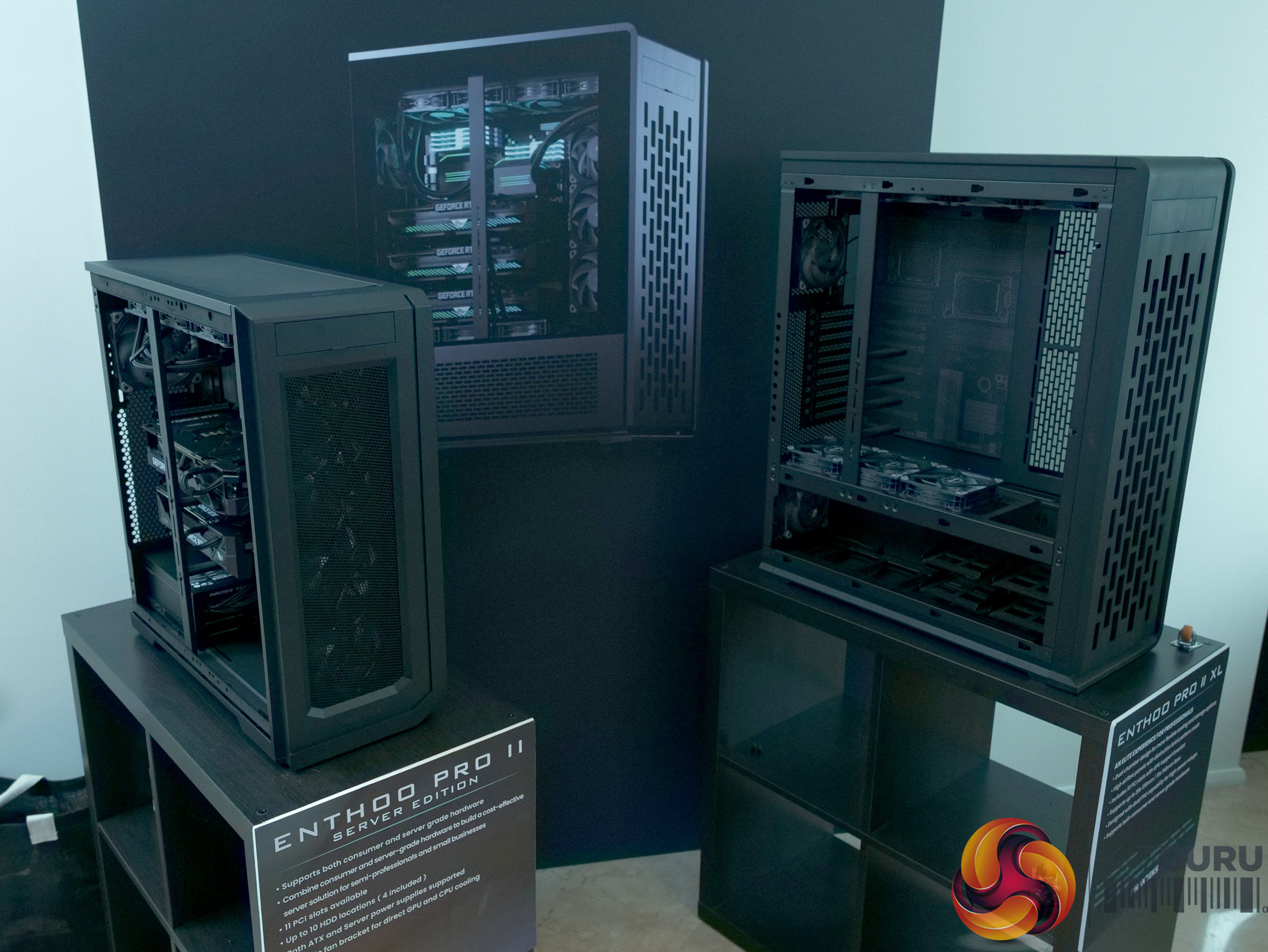 Moving on to Phanteks' new cases, first up we have the new Enthoo Pro II XL, a massive dual-chamber chassis with high airflow panels and a brick pattern mesh. There are 10 PCI slots, room for up to 20 120mm fans and dual-PSU compatibility for those who need extra power.