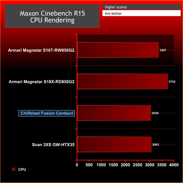 Those machines may be faster in this test, but it’s not like the Chillblast system is slow. The Centauri’s result of 3,039 is about level with the Scan 3XS GW-HT35, which arrived in 2015. That machine cost around £2,000 more than the Chillblast and it relied and two monster Intel Xeon processors – and now, in 2017, the Chillblast’s sole Threadripper chip is just as quick.