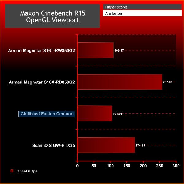 The Centauri’s OpenGL result of 104.98fps is far more ordinary, though. It’s only a couple of frames behind Armari’s Threadripper machine, and miles behind the Intel-based rig. We’re intrigued to see how the Chillblast performs in other OpenGL benchmarks.